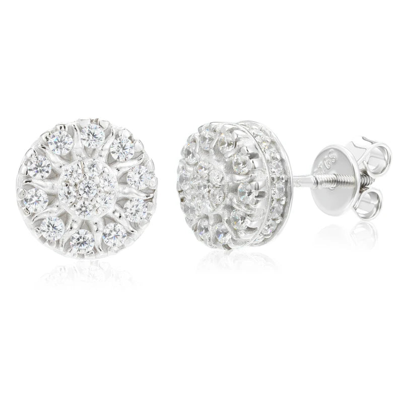 MOISSANITE DIAMOND ICED OUT FLOWER STUD EARRINGS IN STERLING SILVER