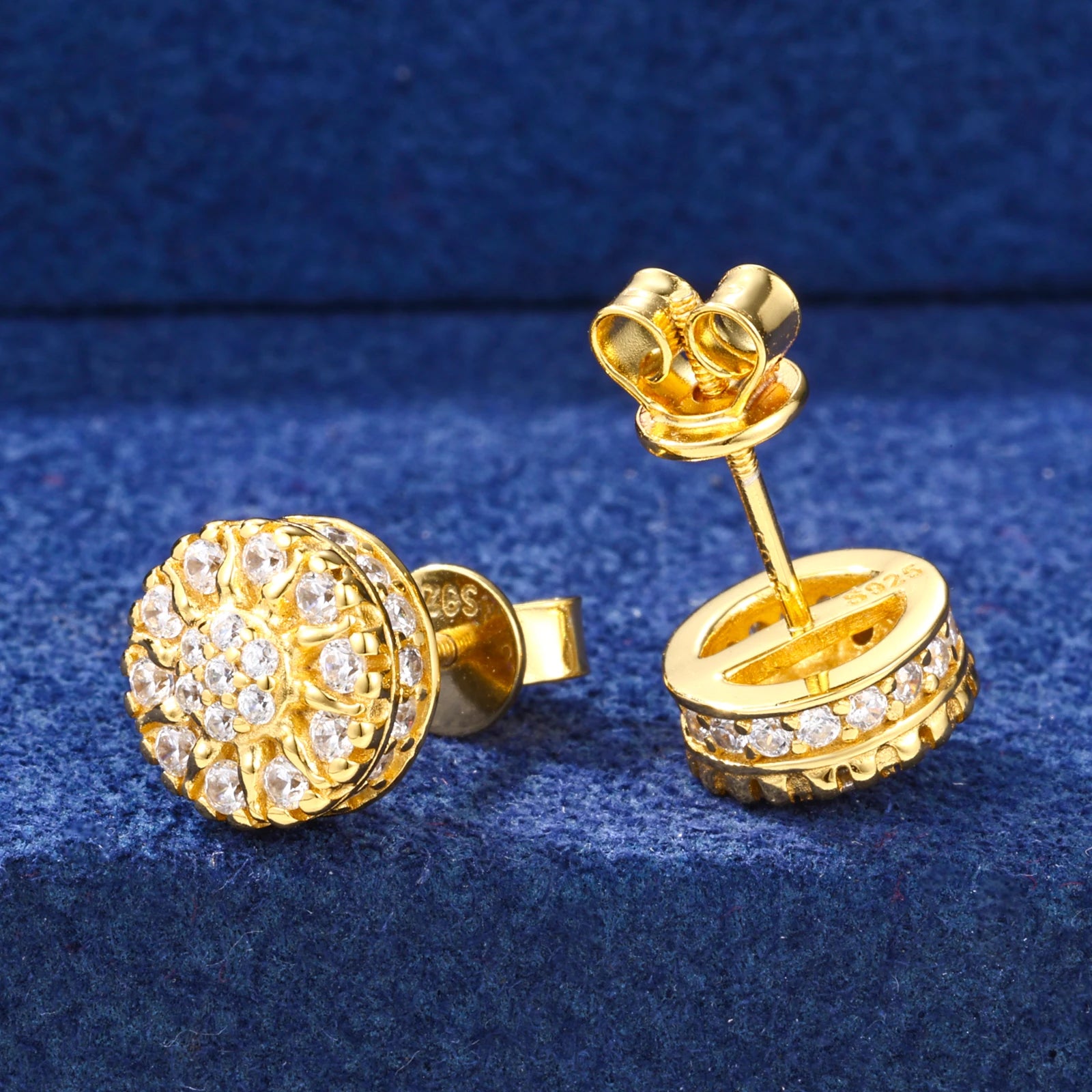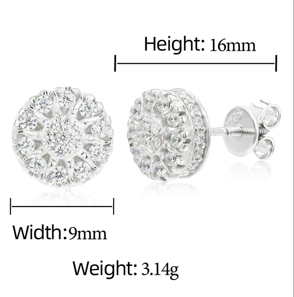 Moissanite Diamond Iced Out Flower Stud Earrings in Sterling Silver: These charming studs bring fresh, floral sparkle to your style 🌸✨. Crafted in sterling silver, each flower is fully iced with brilliant moissanite diamonds that shimmer beautifully from every angle. Lightweight and elegant, they add a soft yet luxurious touch to everyday wear and special moments. A perfect blend of femininity, shine, and timeless design.