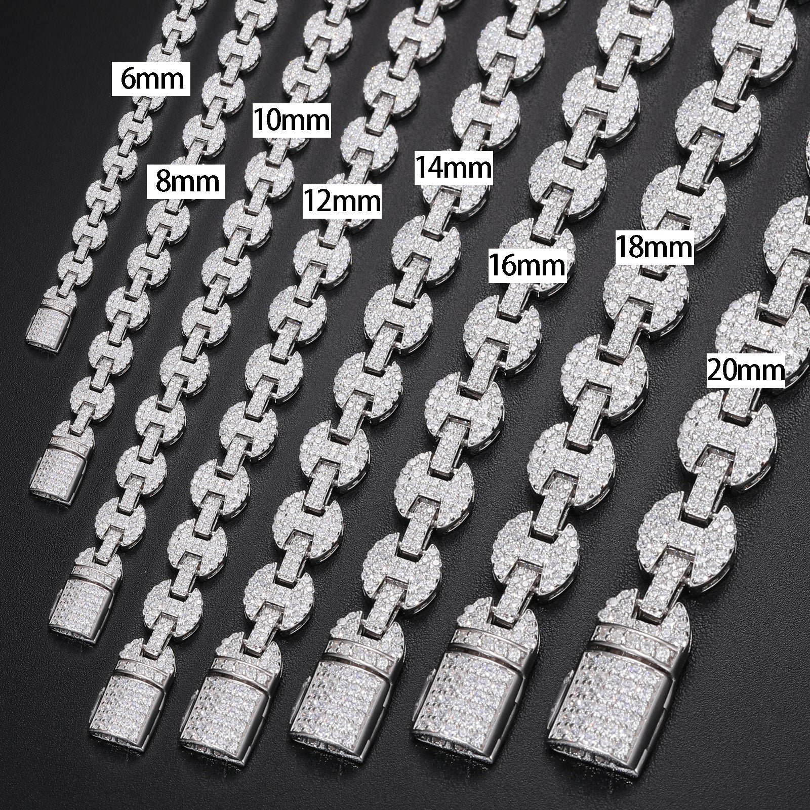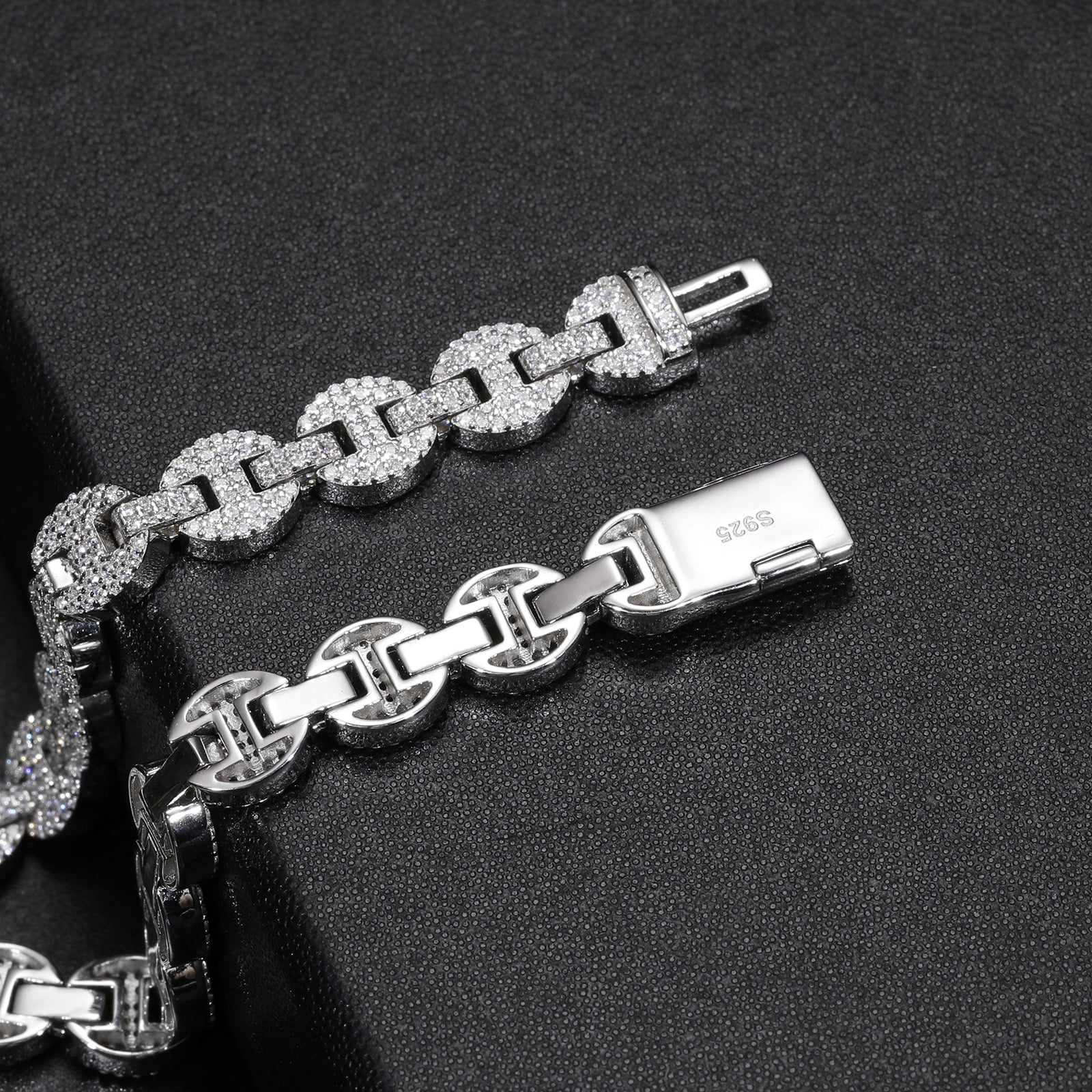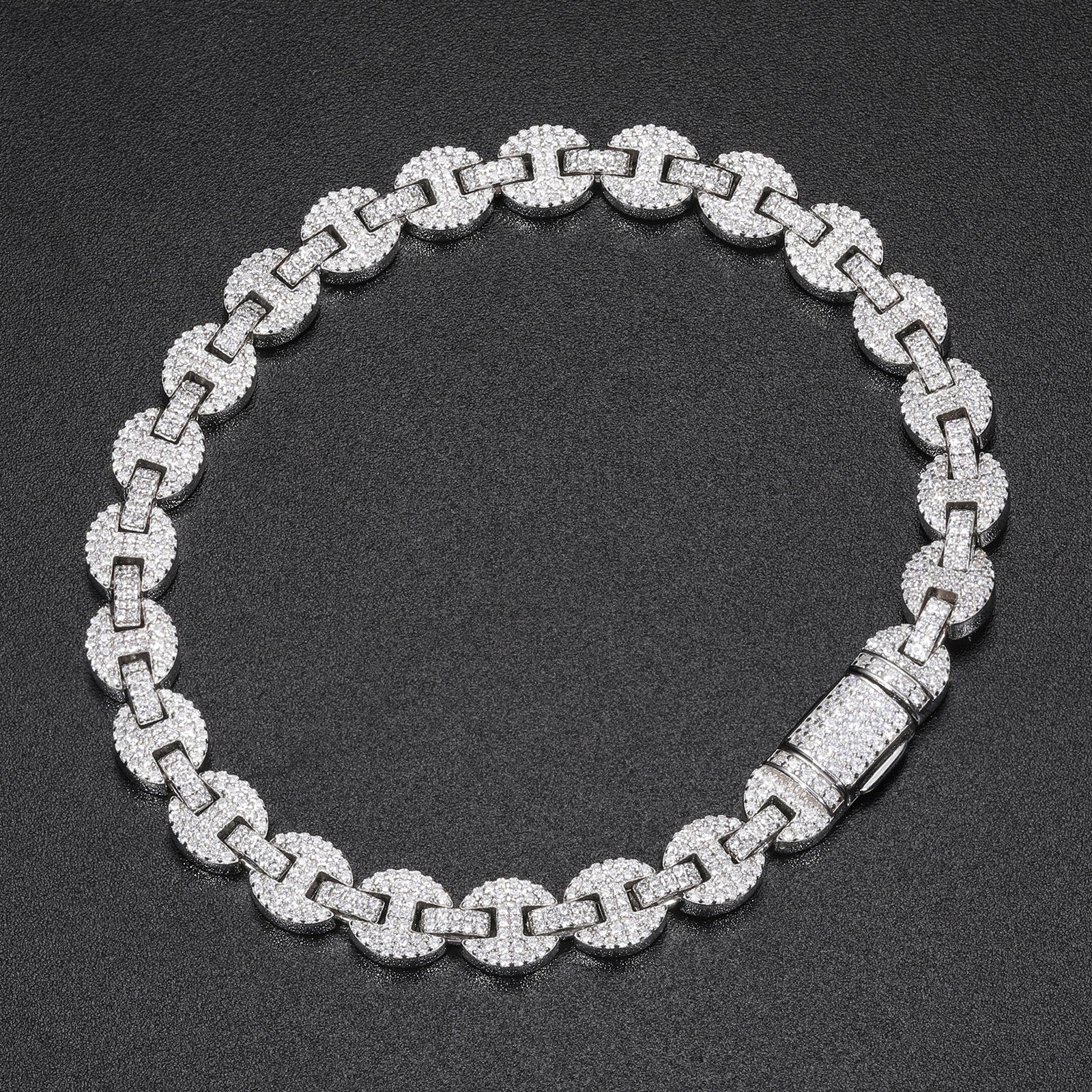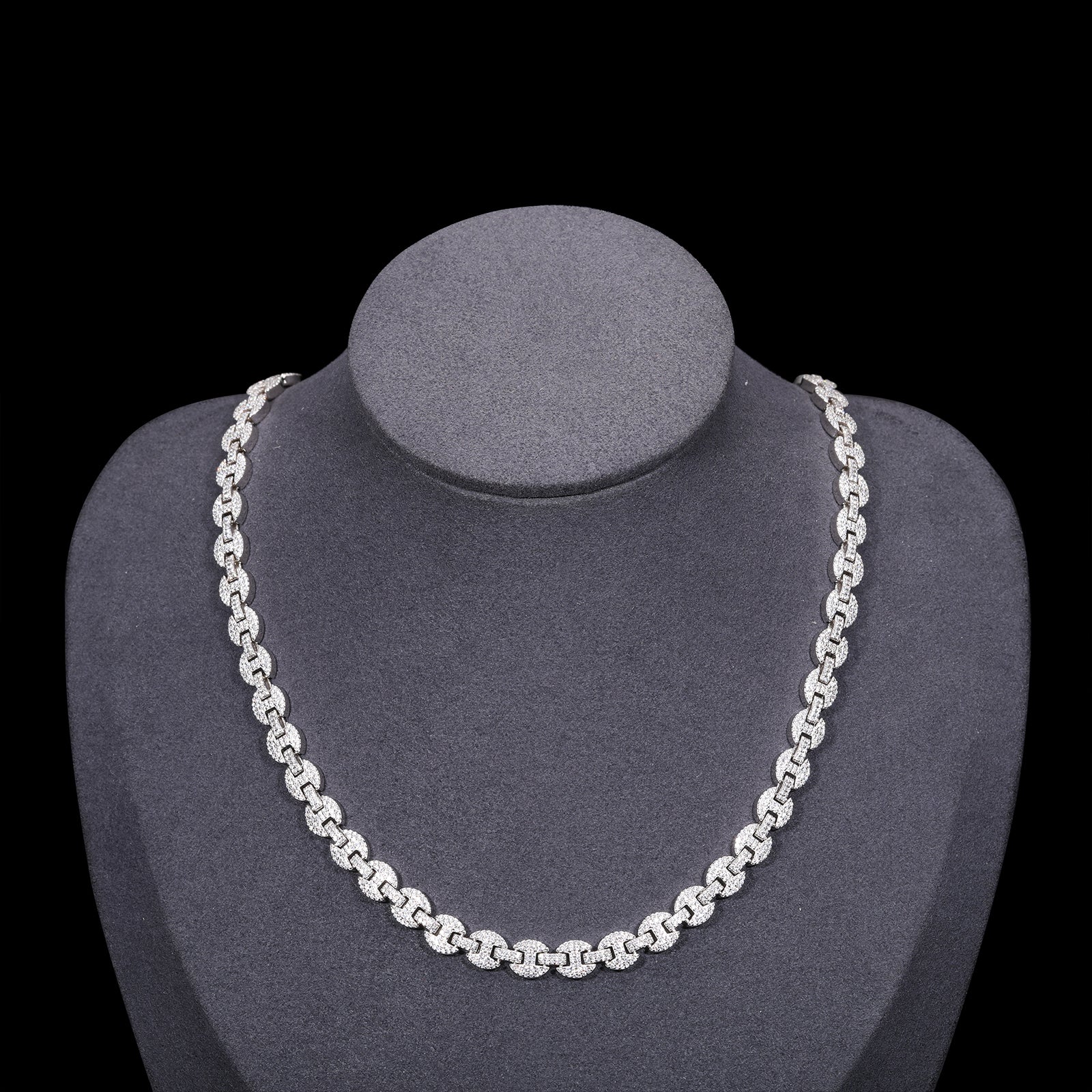 Introducing the "Moissanite Diamond Iced Out Gucci Link Chain" 💎✨! Crafted in sterling silver, this stunning chain features a classic Gucci link design adorned with shimmering moissanite diamonds, exuding luxury and style. With its sleek and sophisticated look, this chain adds a touch of glamour to any outfit, making it the perfect accessory for elevating your fashion game!