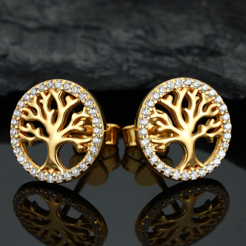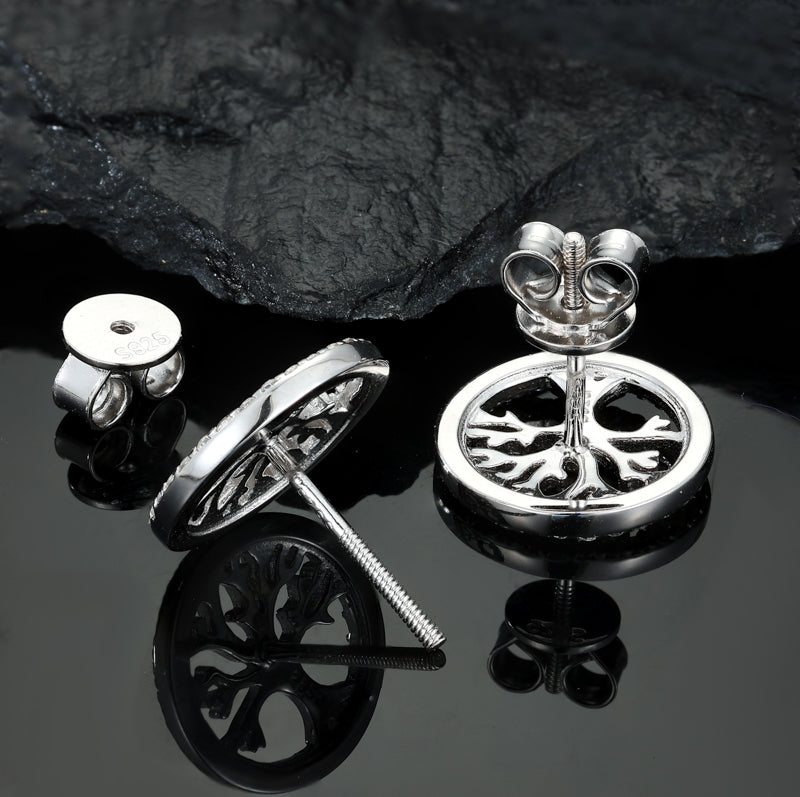 MOISSANITE DIAMOND LIFE TREE STUD EARRINGS IN STERLING SILVER
