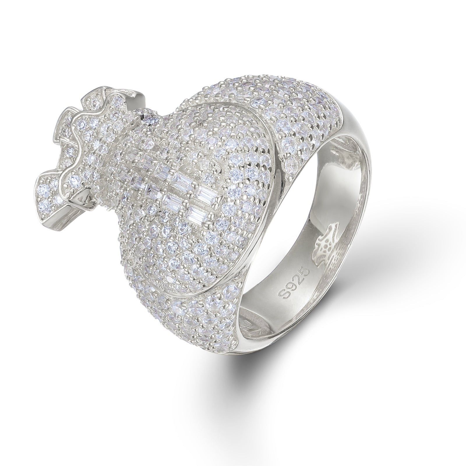 MOISSANITE DIAMOND MONEY BAG RING IN STERLING SILVER