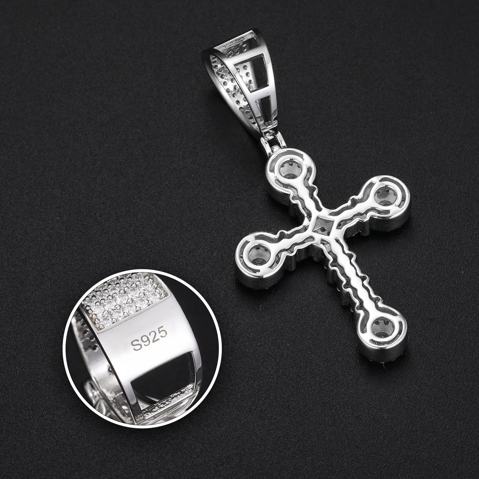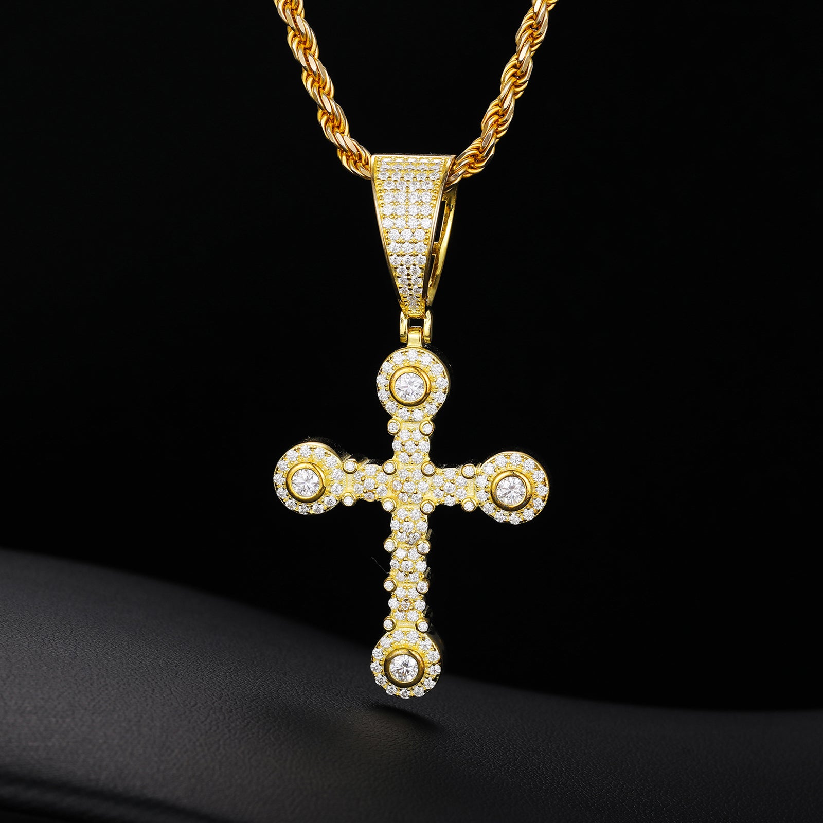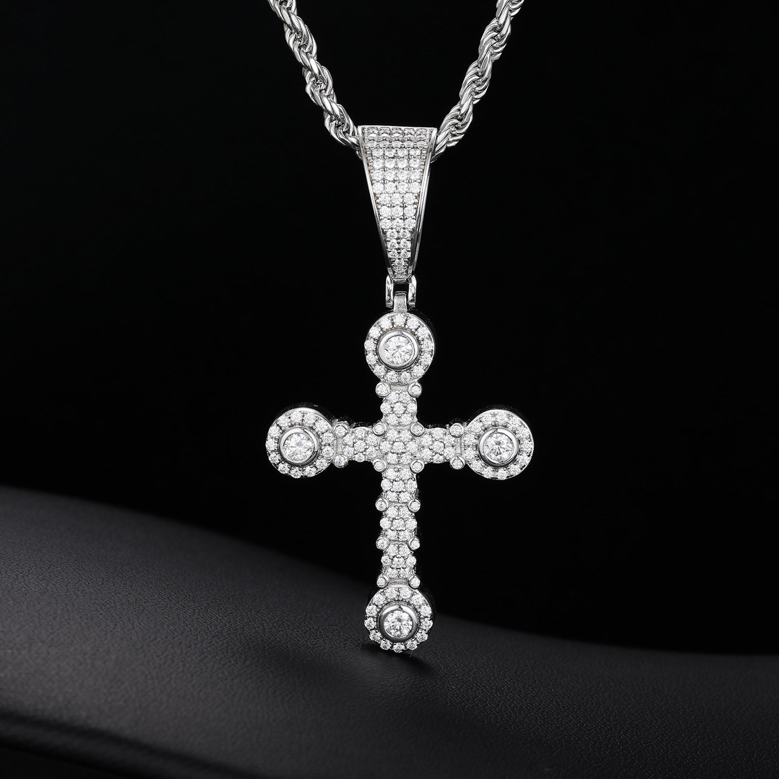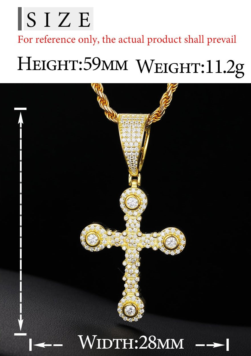 This exquisite Quad Cross Pendant, crafted from high-quality sterling silver, features stunning moissanite diamonds. The intricate design showcases captivating quad stones with moissanite stones at each corner of the cross, enhancing its brilliance and sparkle. Perfect for adding a touch of elegance and sophistication to any outfit, this pendant is a timeless piece that seamlessly blends classic style with modern flair. Wear it for special occasions or to elevate your everyday look. 💎✨🌟