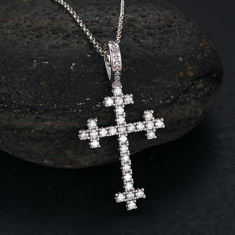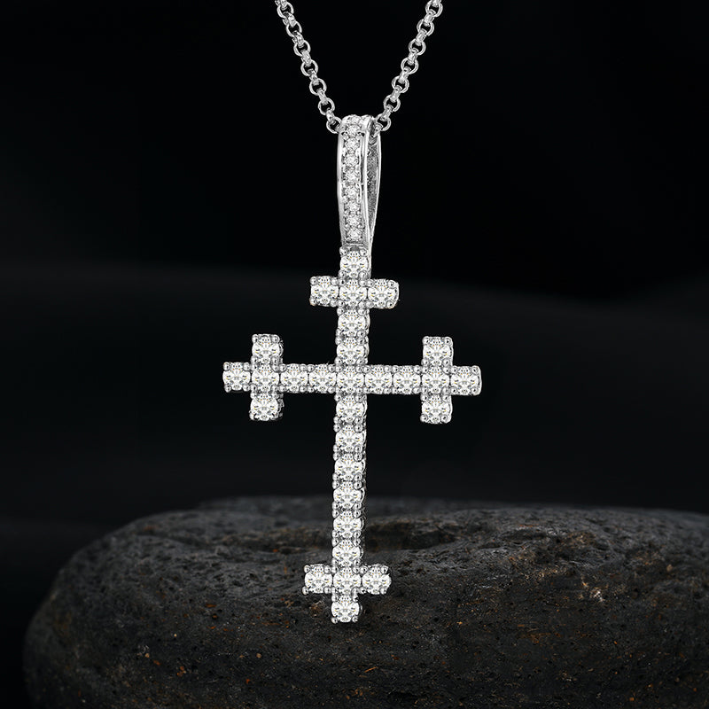 MOISSANITE DIAMOND QUARTET CROSS PENDANT NECKLACE IN STERLING SILVER