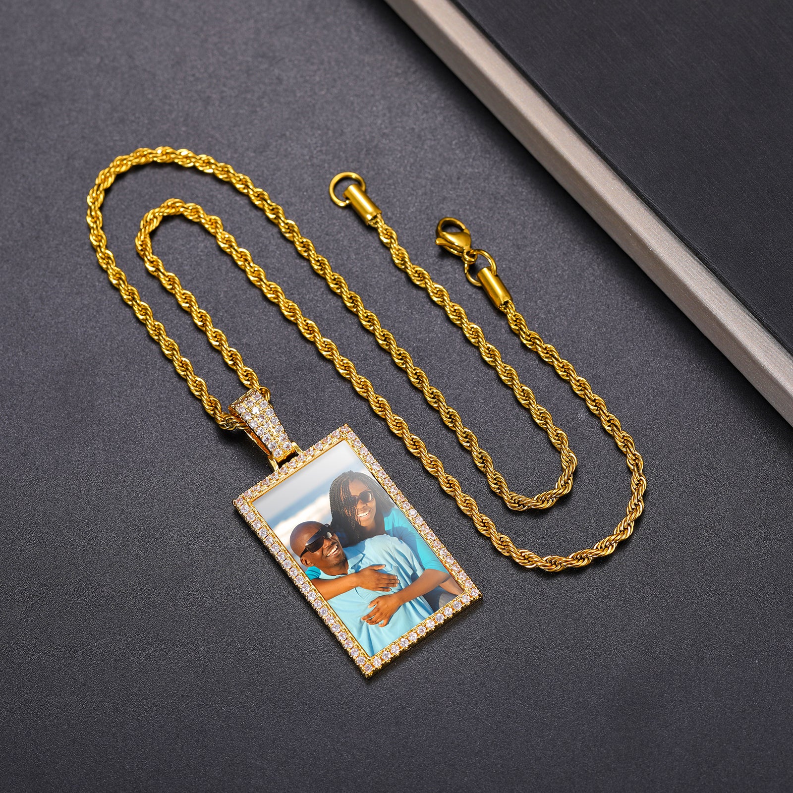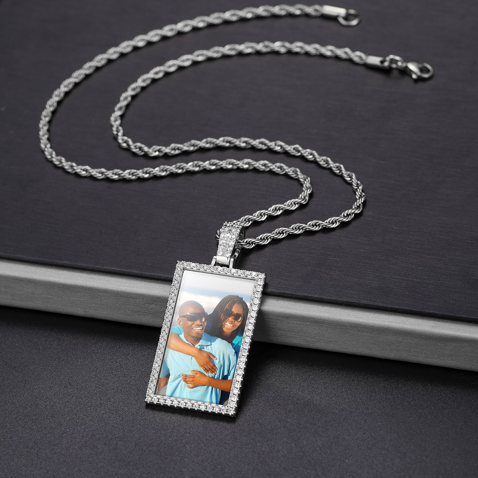 MOISSANITE RECTANGLE CUSTOM PHOTO PENDANT IN STERLING SILVER