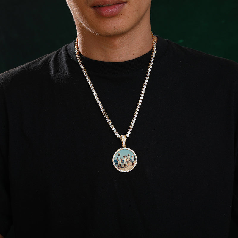MOISSANITE DIAMOND ROUND CUSTOM PHOTO PENDANT IN STERLING SILVER {STYLE 2}