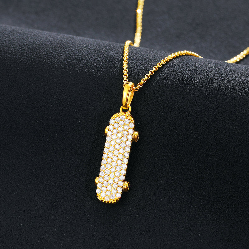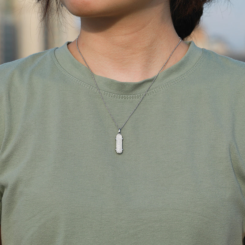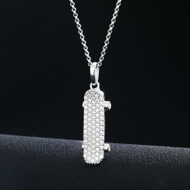 MOISSANITE DIAMOND SKATEBOARD PENDANT IN STERLING SILVER