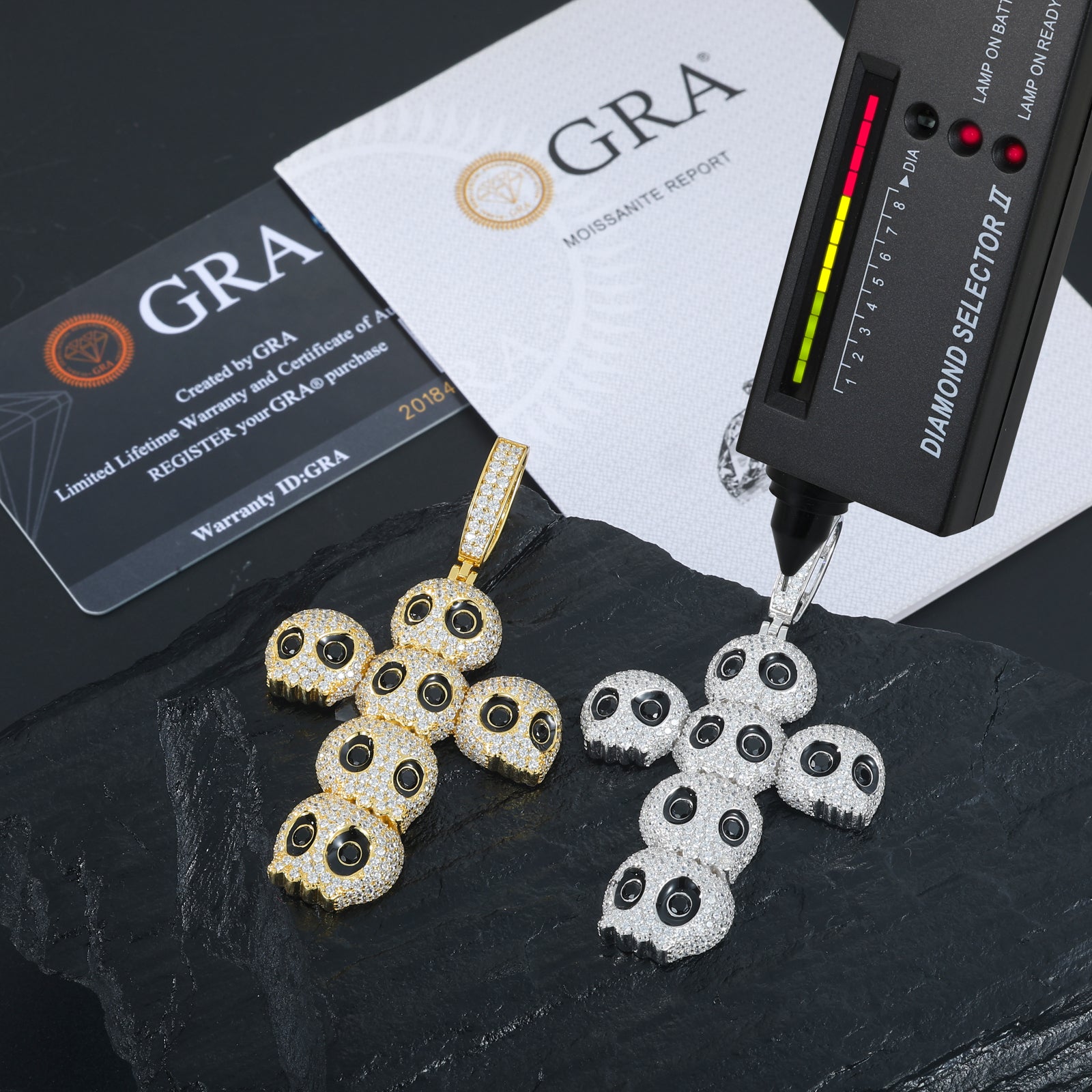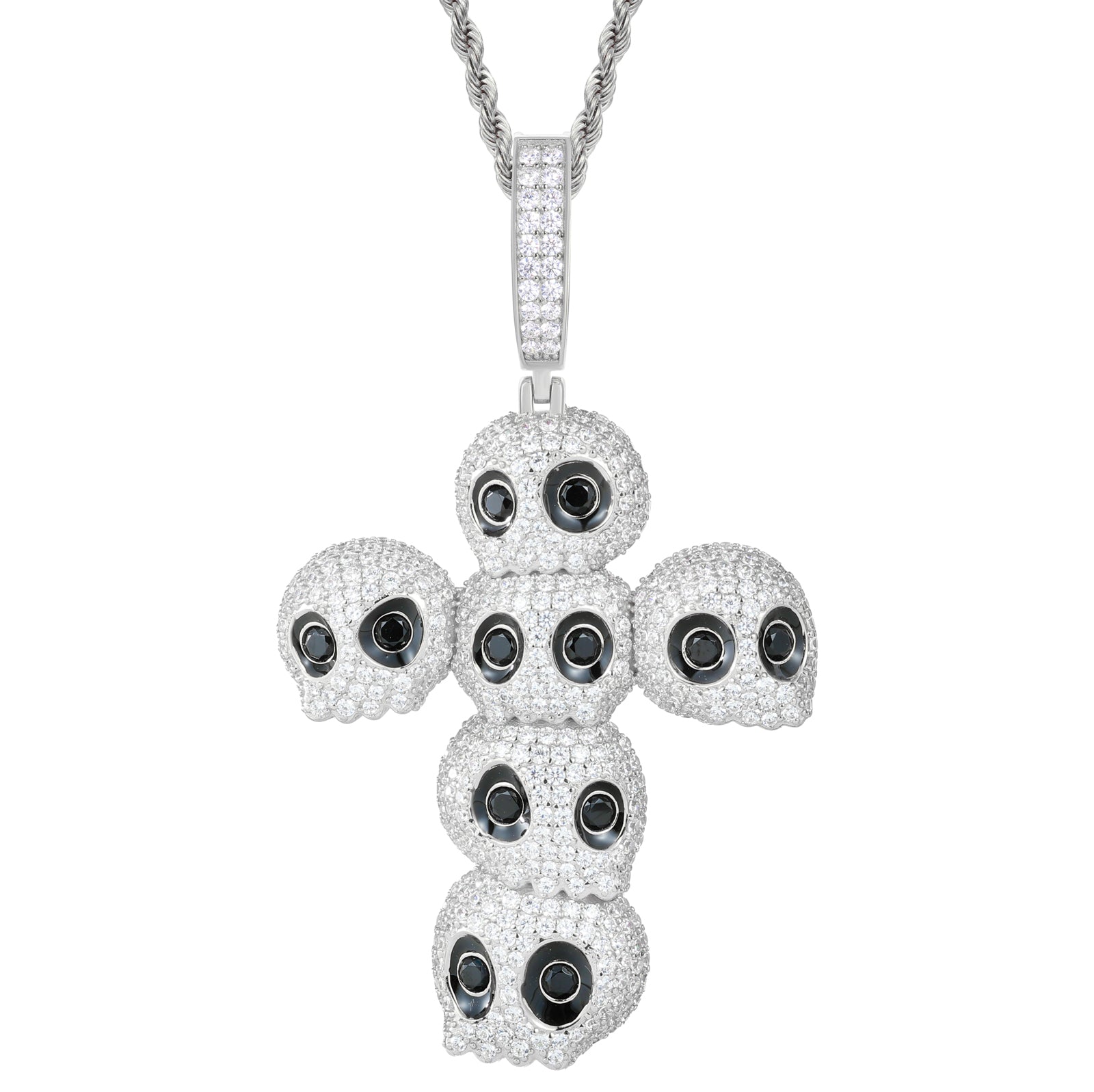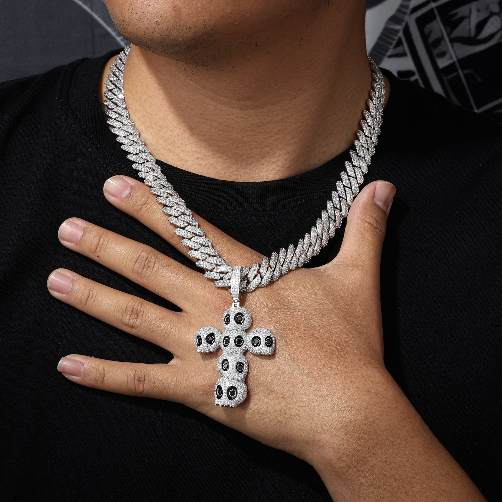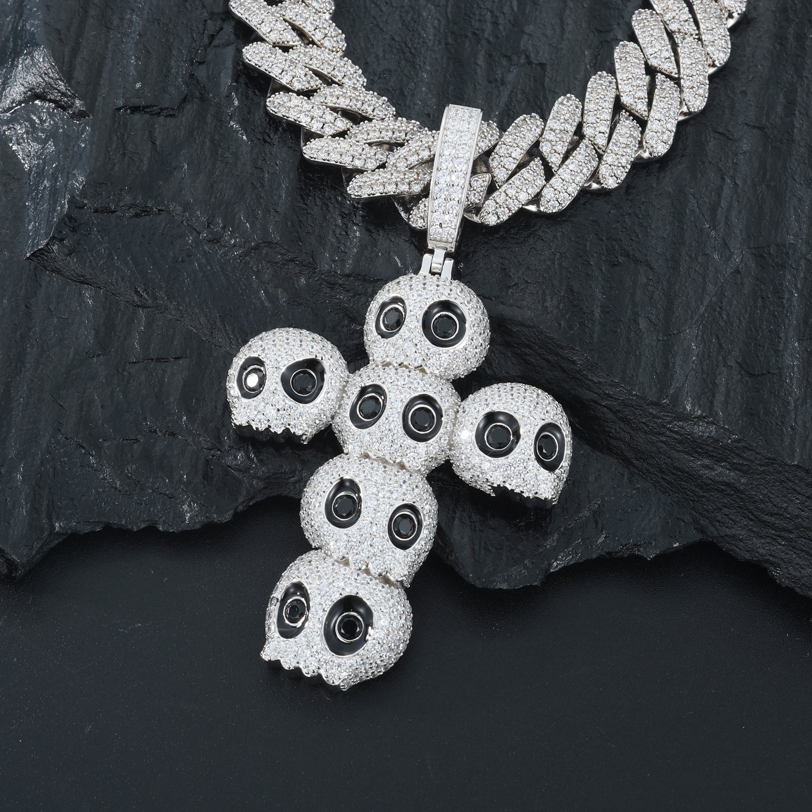 Moissanite Diamond Skull Cross Pendant: A striking fusion of edge and elegance, this pendant showcases a skull-infused cross, fully encrusted with radiant moissanite diamonds. Crafted in sterling silver, it exudes bold luxury and fearless style. 💀✨