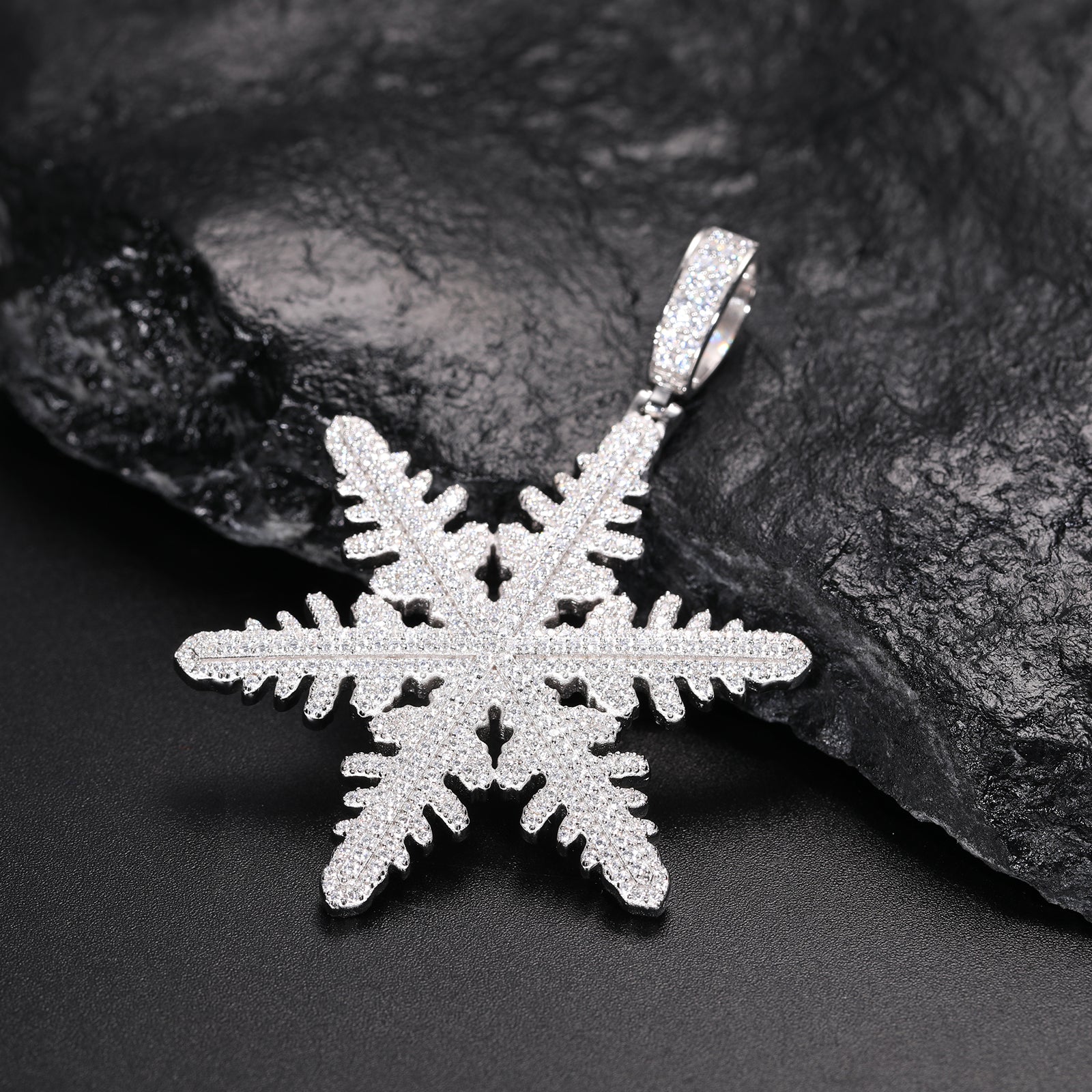 MOISSANITE DIAMOND SNOWFLAKE PENDANT NECKLACE IN STERLING SILVER