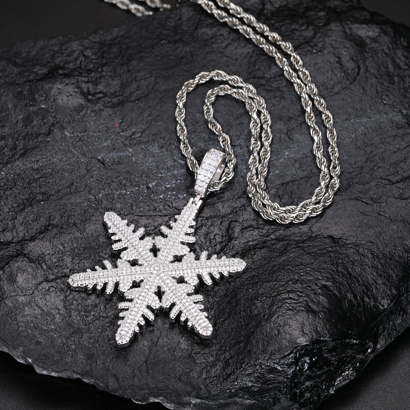 Elevate your style with our stunning Moissanite Diamond Snowflake Pendant Necklace in Sterling Silver! ❄️💎 Crafted with exquisite detail, this elegant pendant features shimmering Moissanite diamonds arranged in a captivating snowflake design. Perfect for adding a touch of sparkle to any outfit, this necklace is sure to become a cherished piece in your collection.
