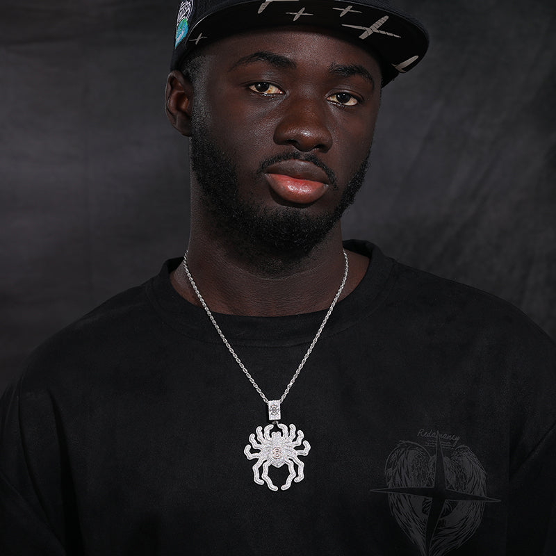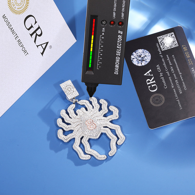 Introducing our Moissanite Diamond Spider Pendant in Sterling Silver {Style 2}. This eye-catching pendant features a meticulously crafted spider design, adorned with dazzling moissanite stones. Set in high-quality sterling silver, it blends the intriguing allure of a spider motif with the brilliance of moissanite. Perfect for those who appreciate unique and edgy jewelry, this pendant adds a touch of captivating charm to any outfit. Ideal for both everyday wear and special occasions, it is designed to dazzle and inspire. 🕷️💎✨