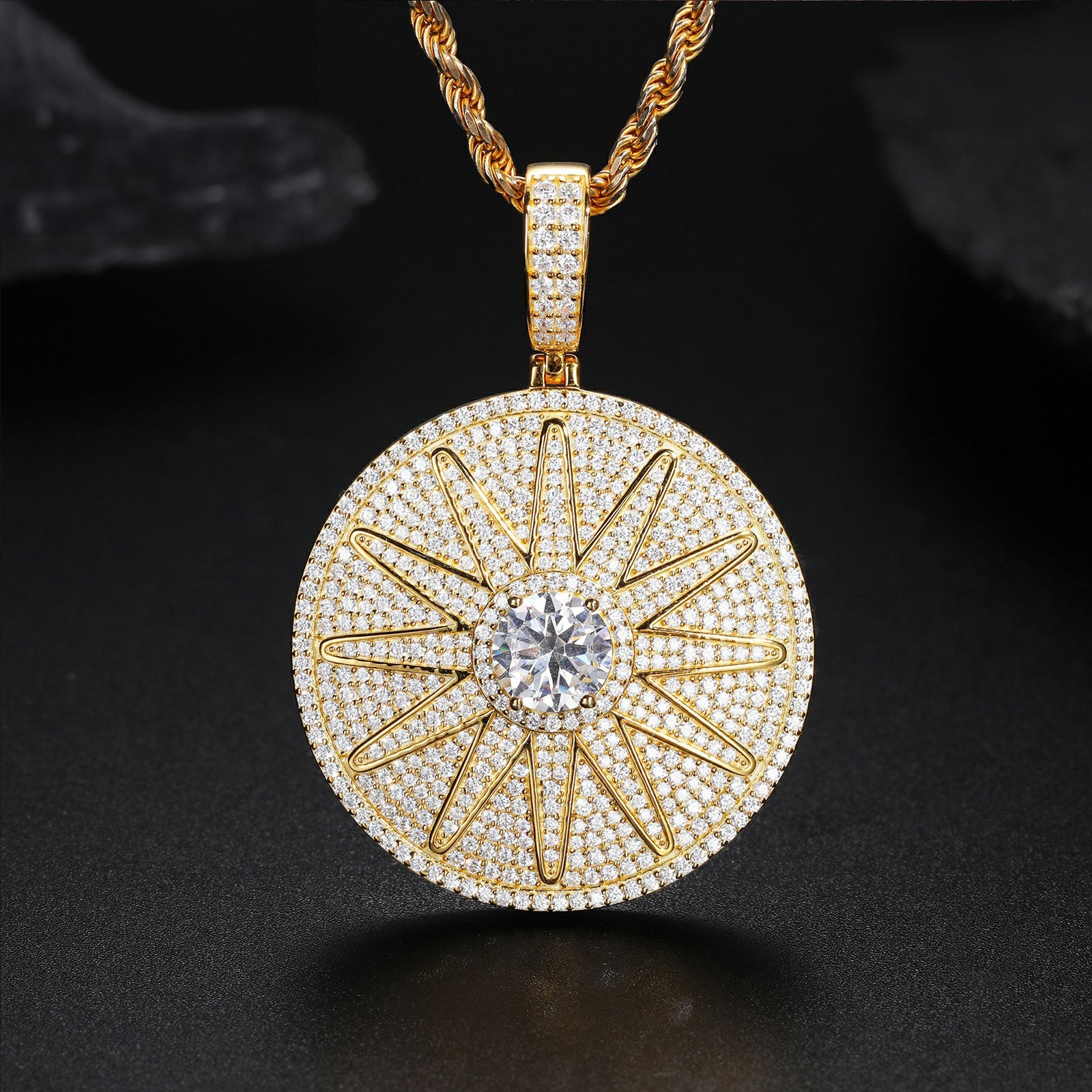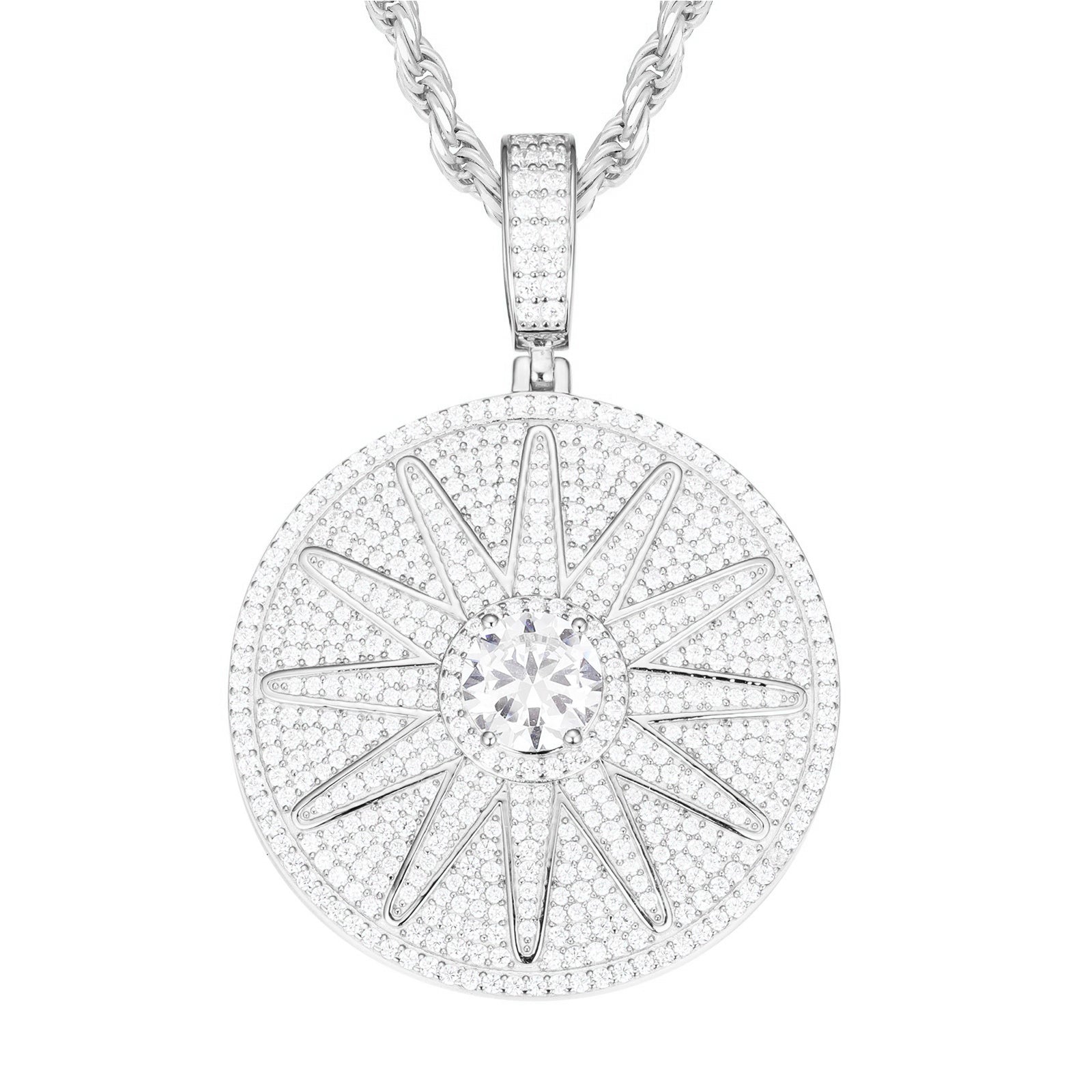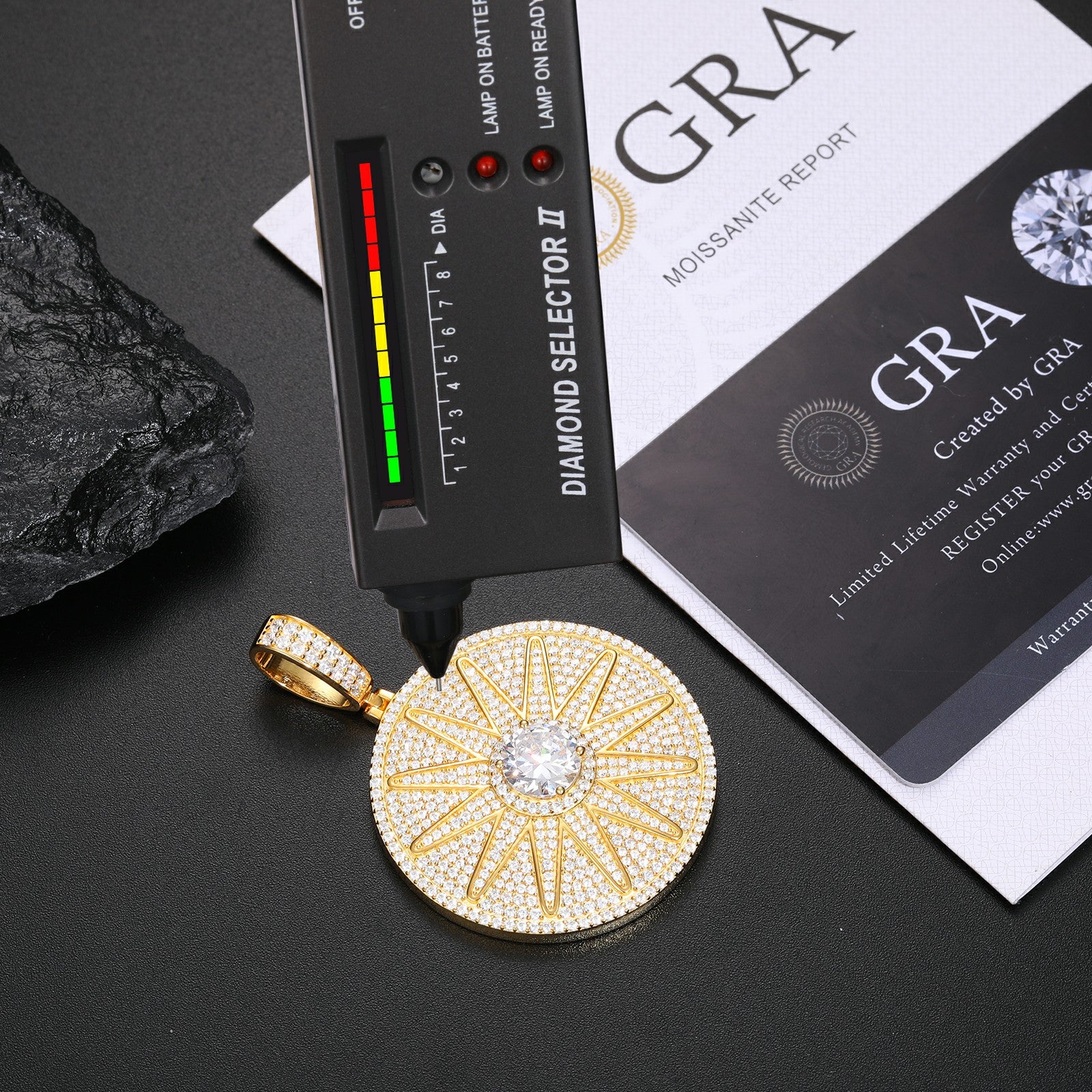 MOISSANITE DIAMOND SUN TAG PENDANT NECKLACE IN STERLING SILVER