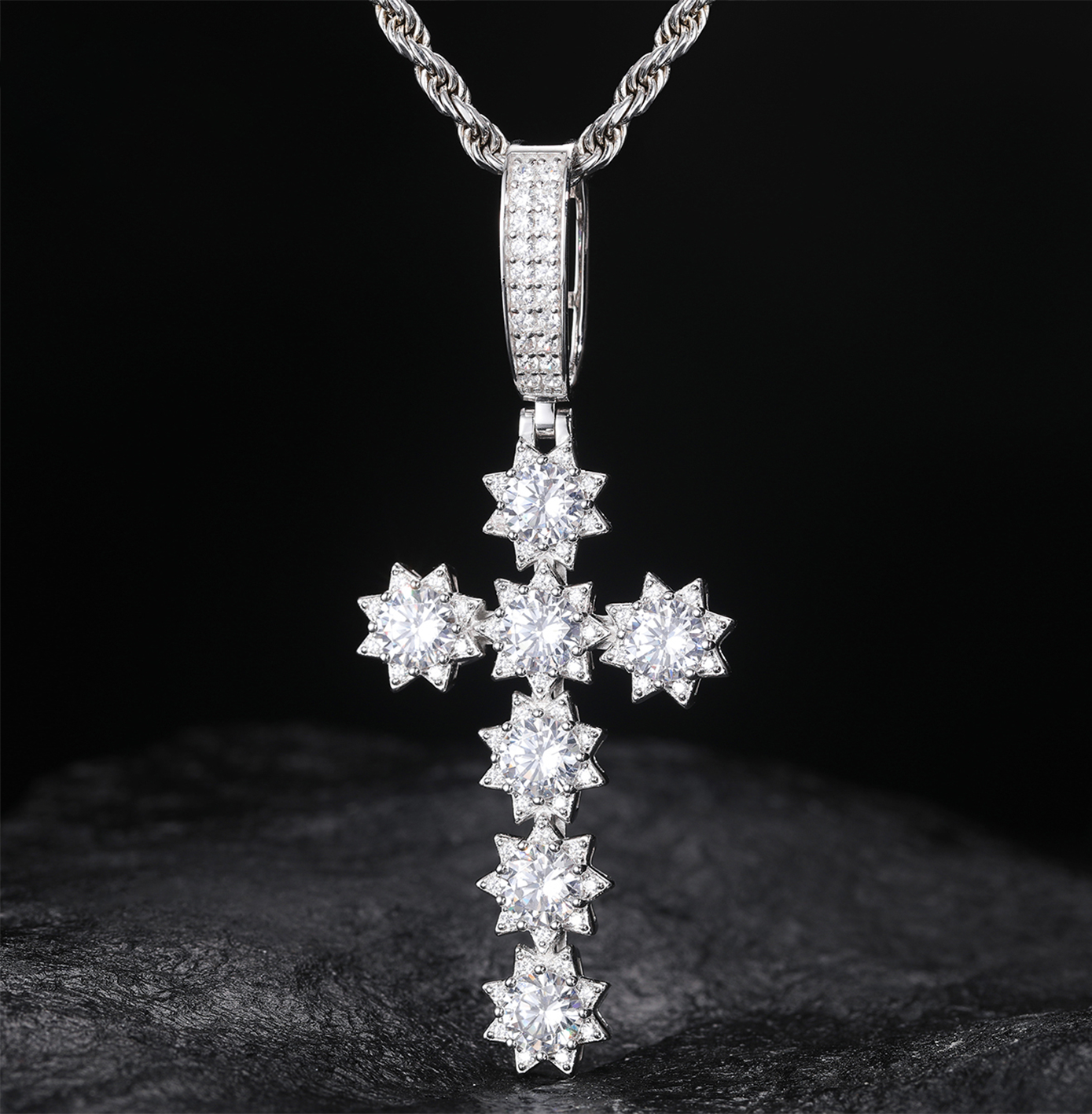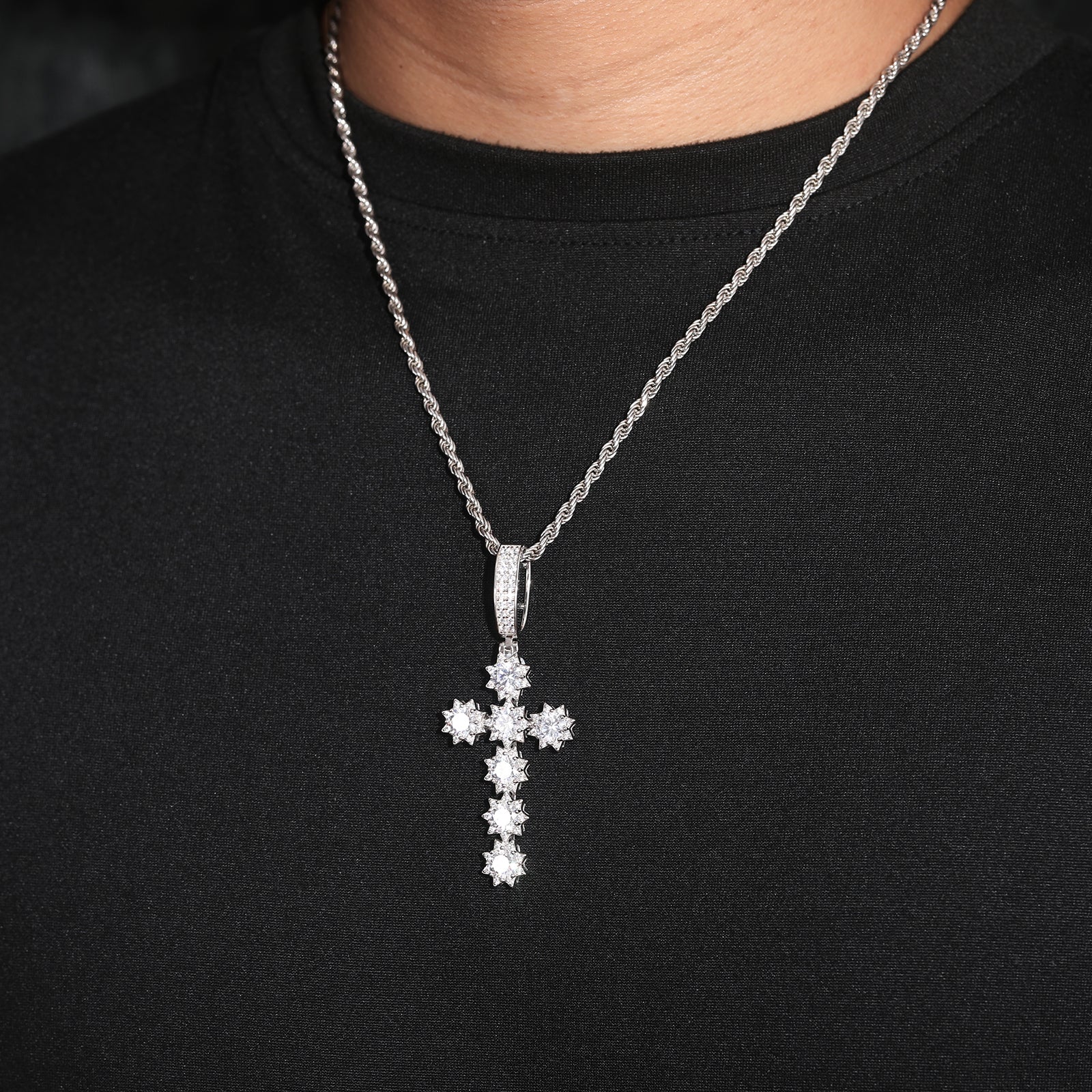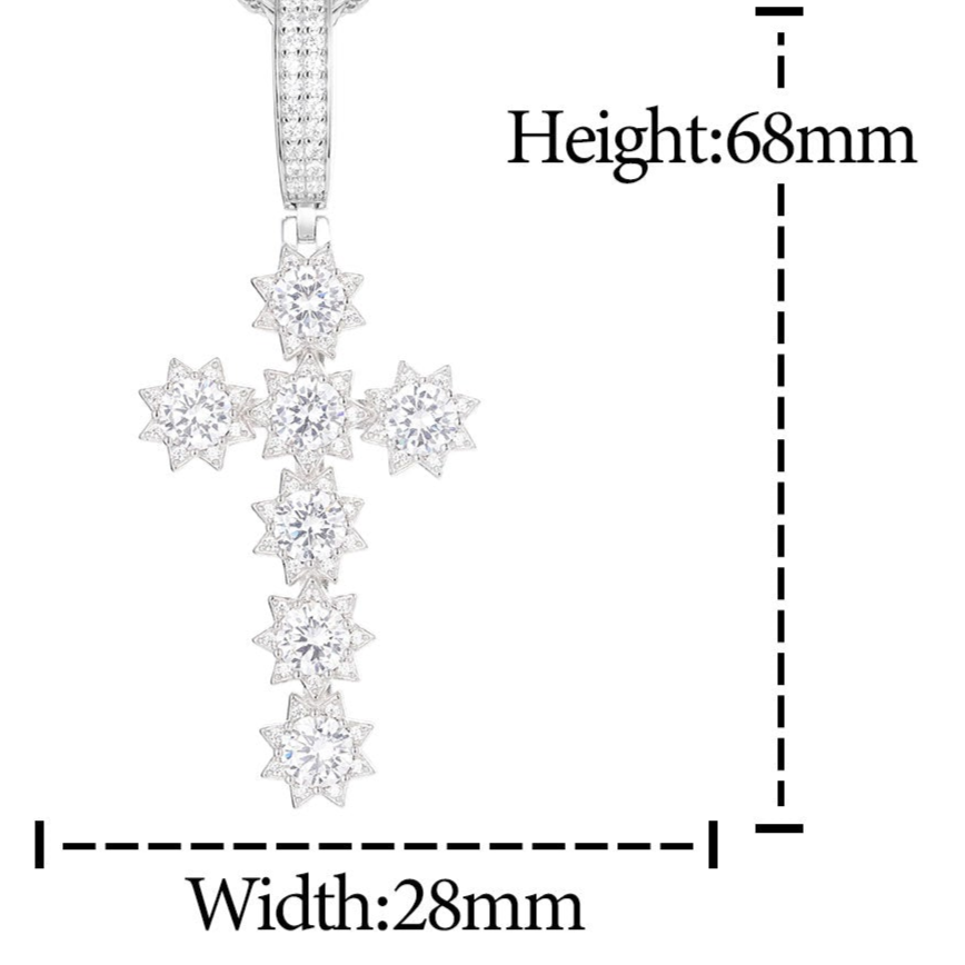 MOISSANITE DIAMOND SUNSHINE CROSS PENDANT IN STERLING SILVER