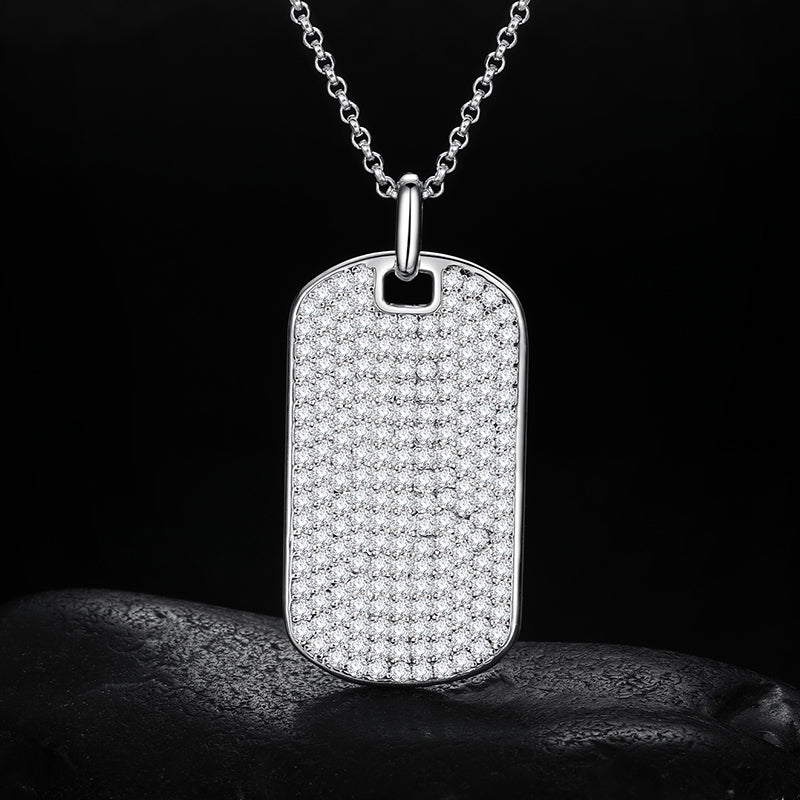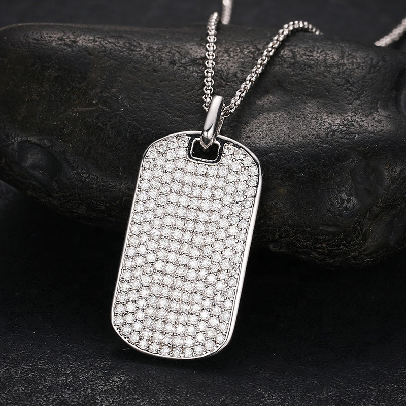 MOISSANITE TAG CHARM PENDANT NECKLACE IN STERLING SILVER {STYLE 2}