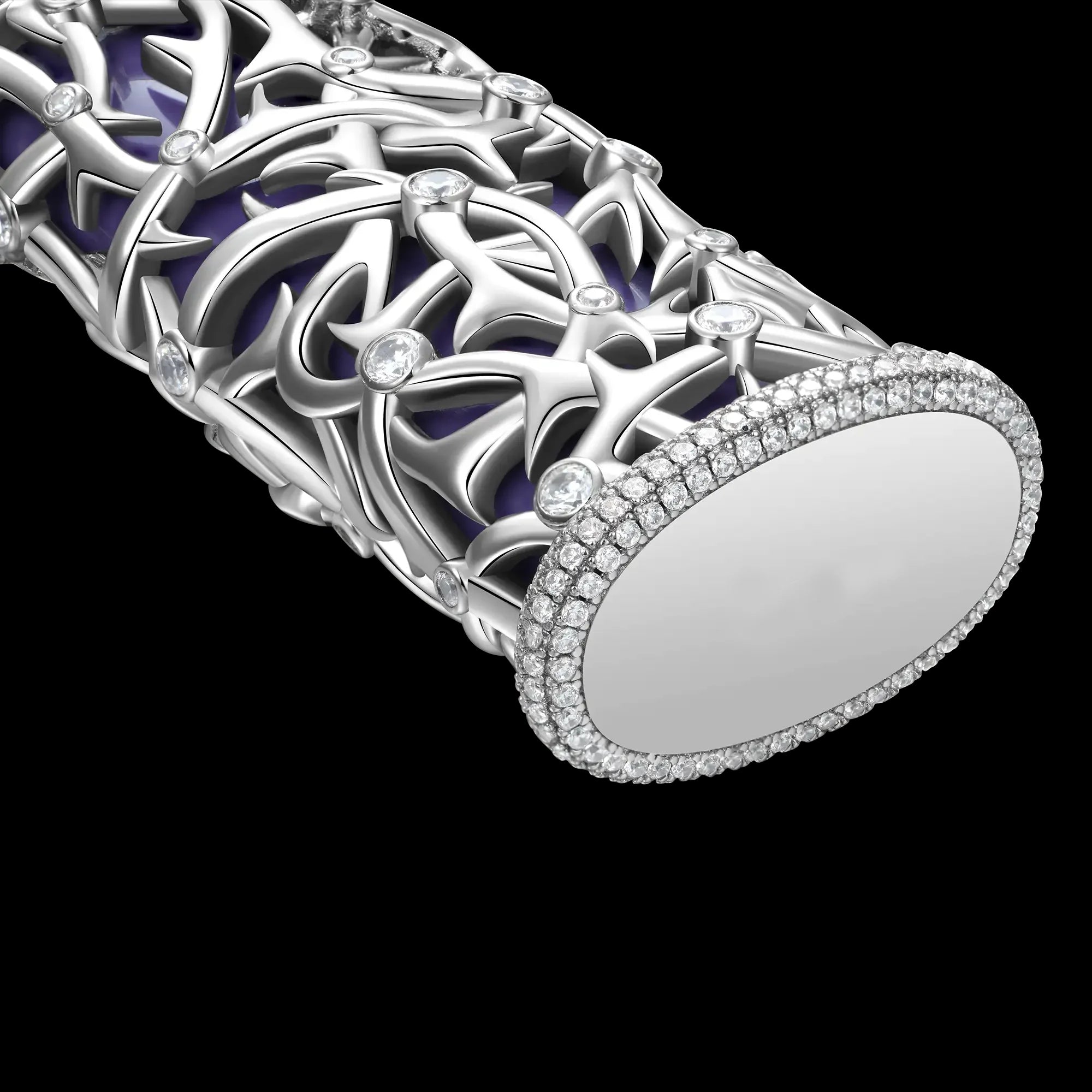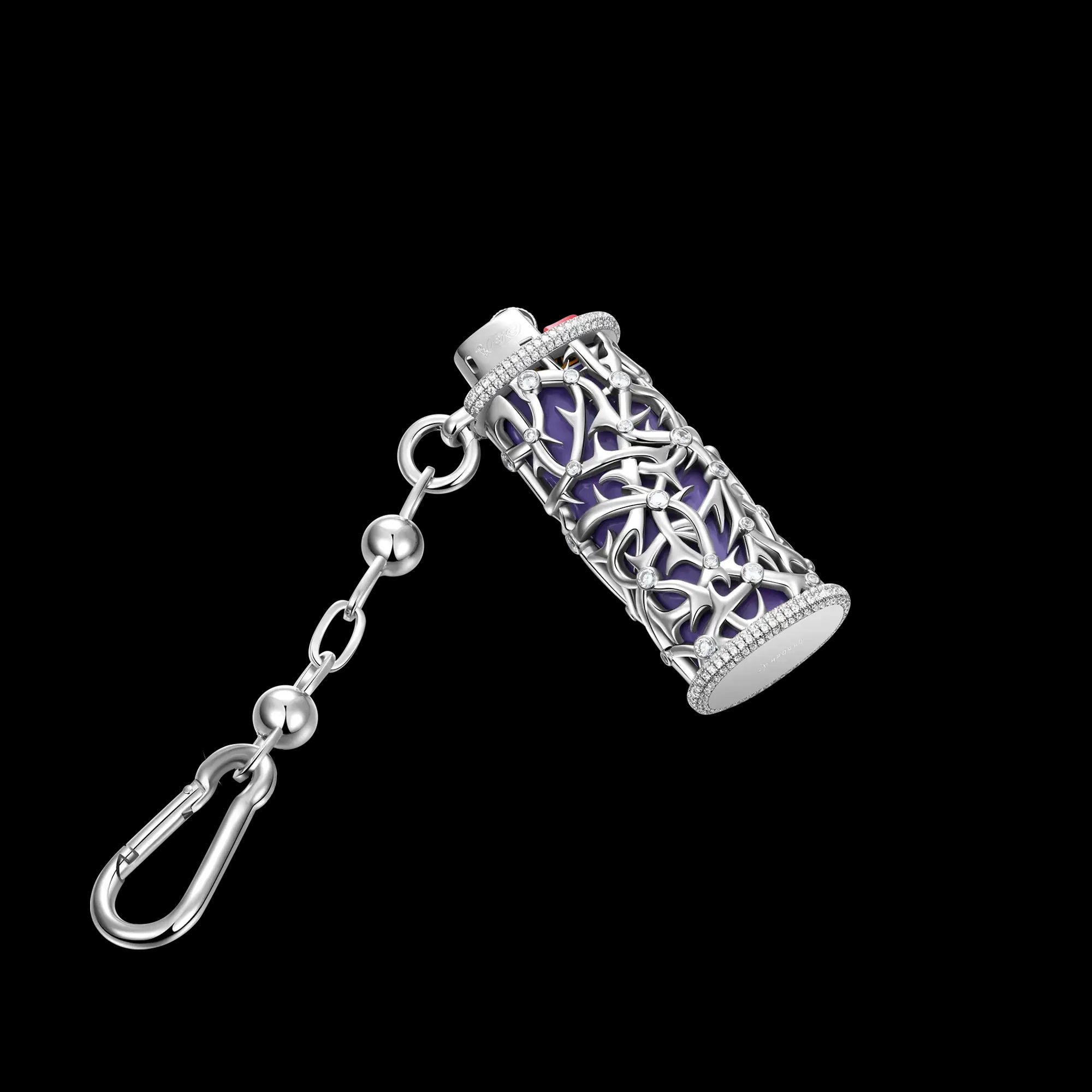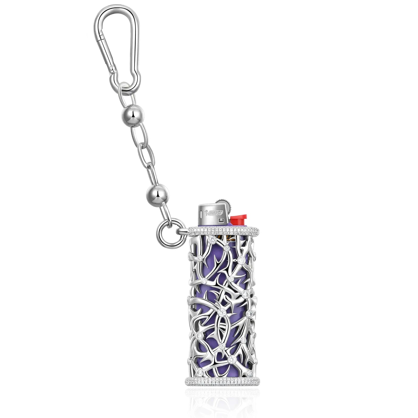 Moissanite Diamond Twilight Vine Lighter Case in Sterling Silver: This artistic lighter case blends elegance with bold design ✨. Crafted in sterling silver, the intricate vine pattern wraps beautifully around the body, revealing a striking twilight-purple core beneath. Accented with shimmering moissanite diamonds, it delivers a luxurious glow and a standout aesthetic. Perfect for collectors and style lovers, it transforms a simple lighter into a statement accessory 🌙.
