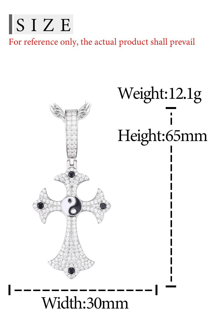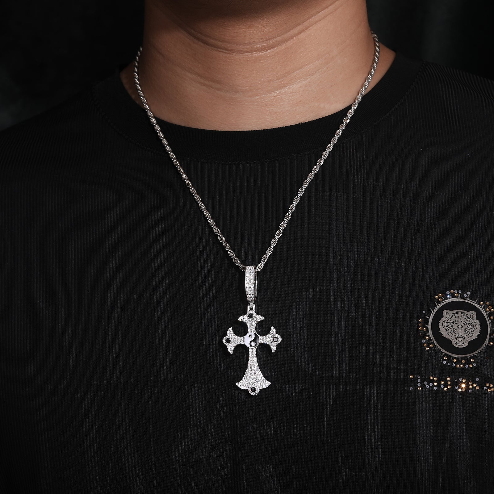 MOISSANITE DIAMOND YIN-YANG CROSS PENDANT IN STERLING SILVER