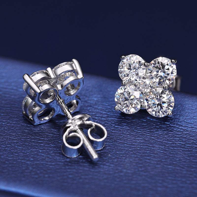MOISSANITE FOUR LEAF CLOVER STUD EARRINGS IN STERLING SILVER