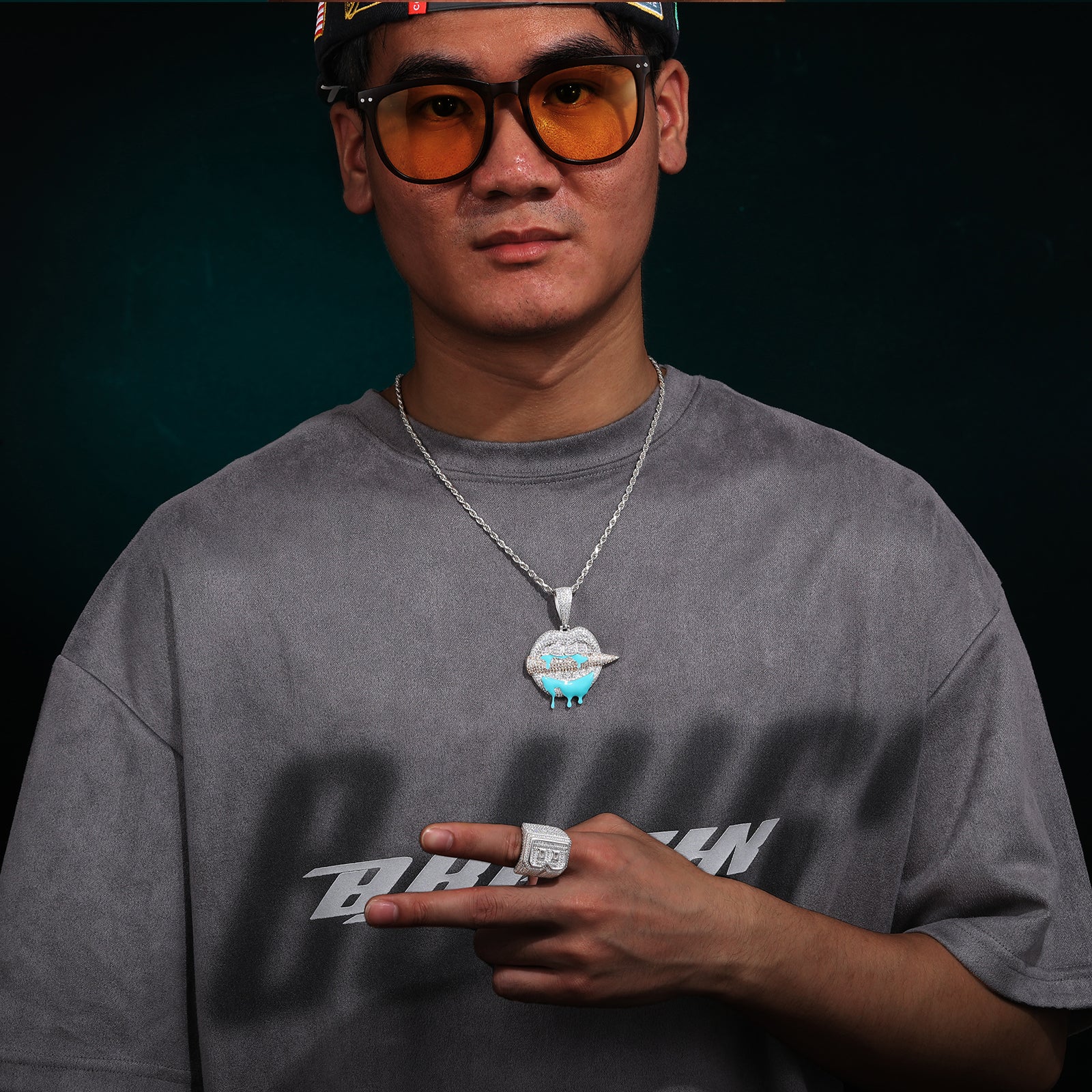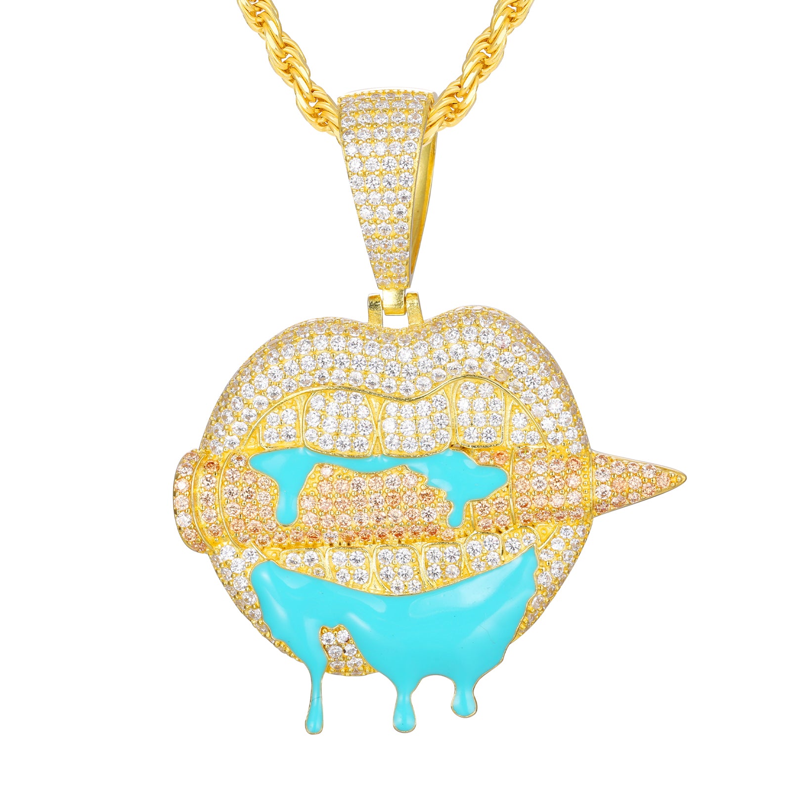 MOISSANITE GLOW IN THE DARK BULLET IN LIPS PENDANT IN STERLING SILVER