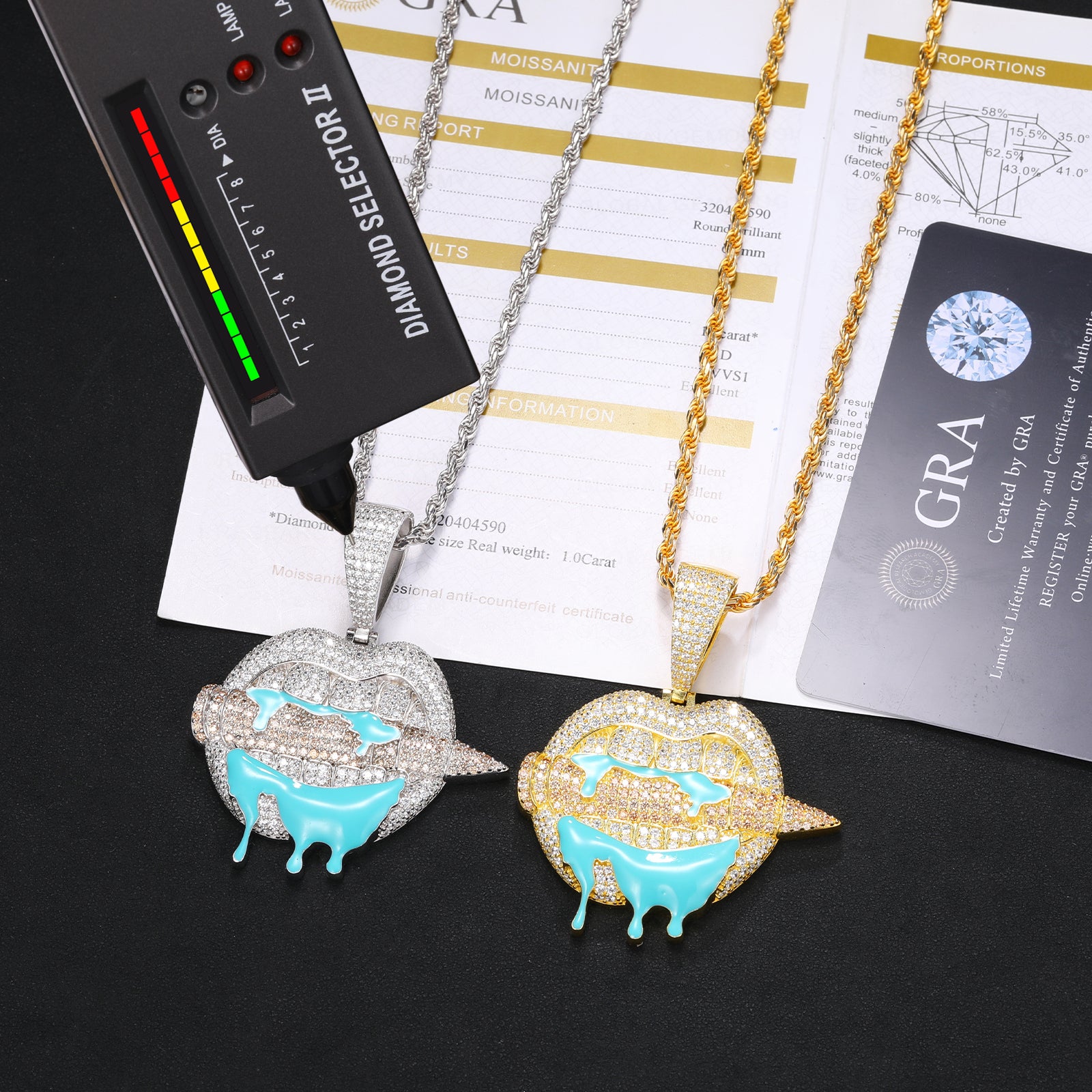 Introducing our Glow in the Dark Moissanite Enamel Lips Bullet Necklace in Sterling Silver. This unique necklace features a bullet-shaped pendant adorned with a striking lips design, accented with sparkling moissanite stones and glow-in-the-dark enamel. Crafted from high-quality sterling silver, it combines bold elements with playful charm. Perfect for making a statement, this necklace adds a touch of edgy elegance to any outfit. Ideal for both casual wear and special occasions, it is designed to captivate and inspire. 💋💎✨