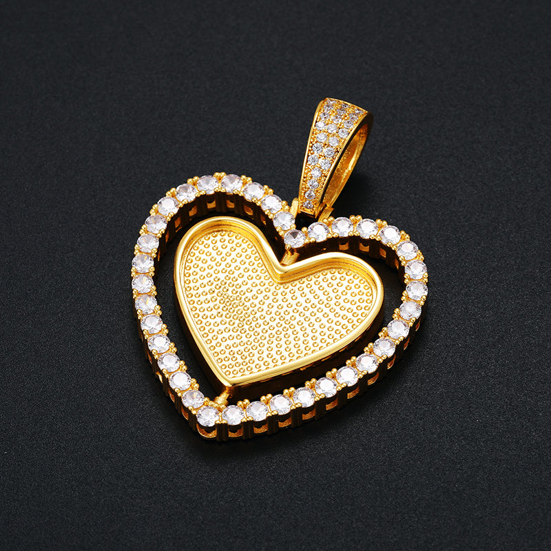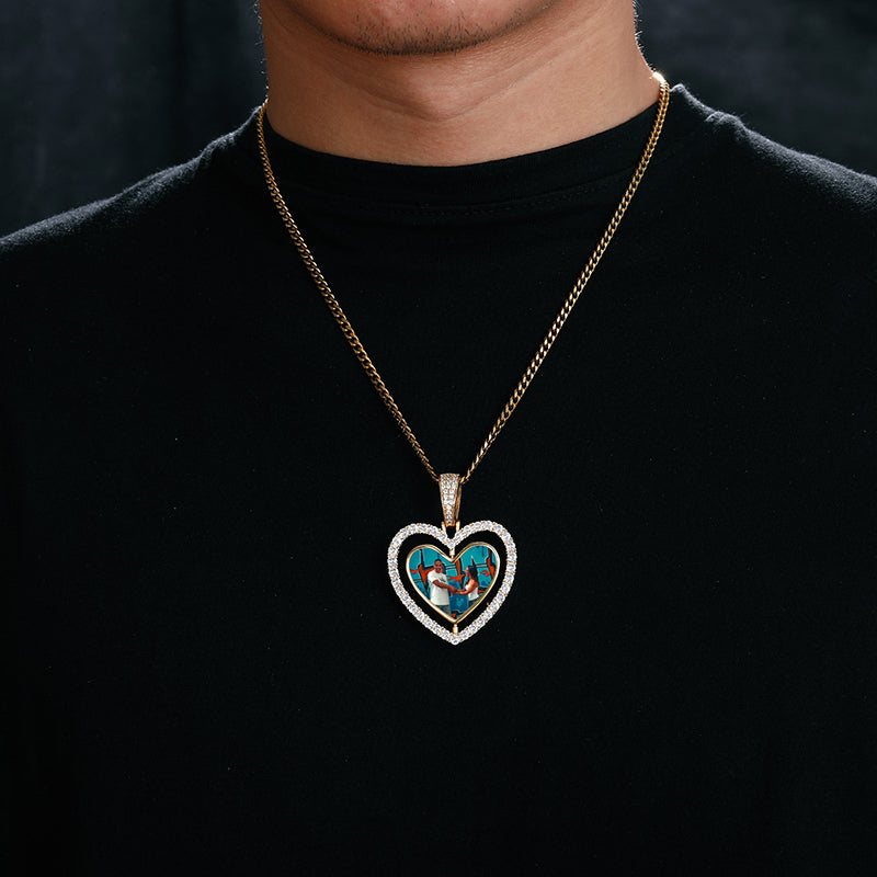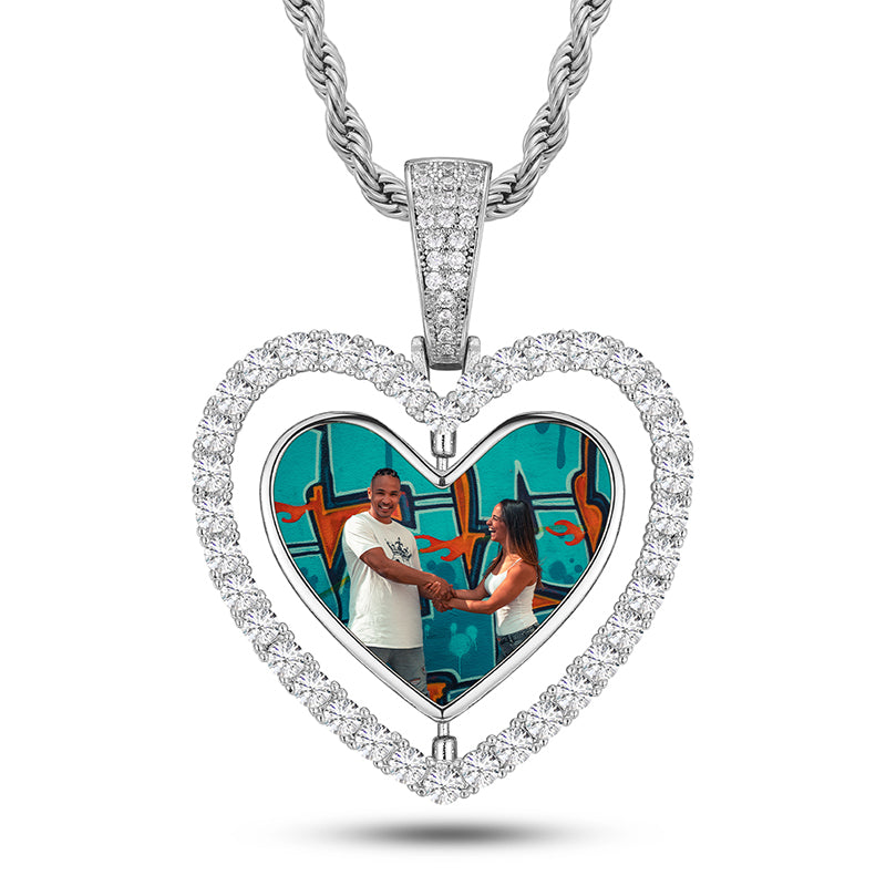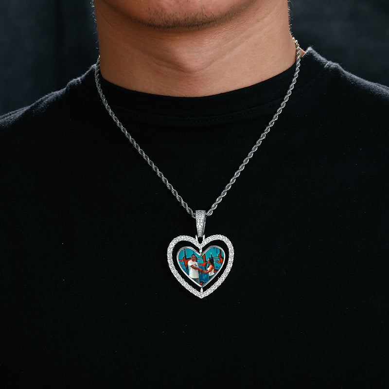 Create lasting memories with our exquisite Moissanite Diamond Halo Heart Shape Picture Pendant in Sterling Silver. 💖 This pendant is more than just jewelry; it's a treasure chest for your most cherished moments. Crafted with precision, it boasts two sides, each ready to be adorned with a personalized photo engraving, surrounded by shimmering moissanite diamonds, adding an extra touch of elegance and sparkle. ✨ Whether it's a snapshot of a special occasion, a beloved family member, or a beloved pet, this pendant offers a timeless way to keep your precious memories close to your heart, creating an heirloom piece you'll cherish for years to come.