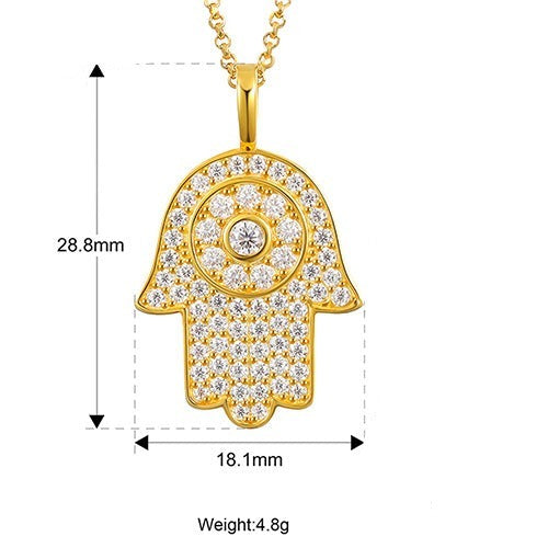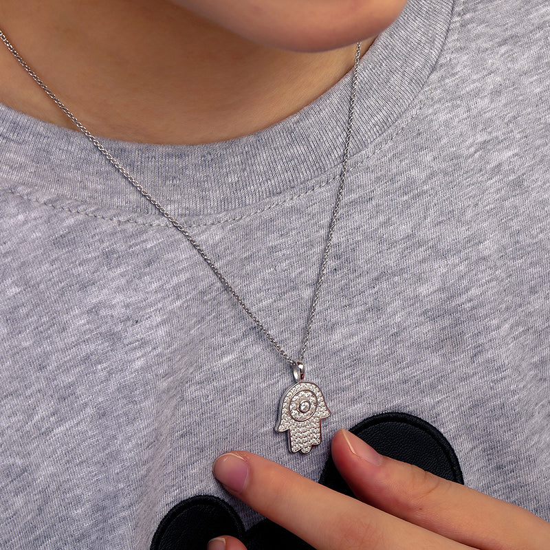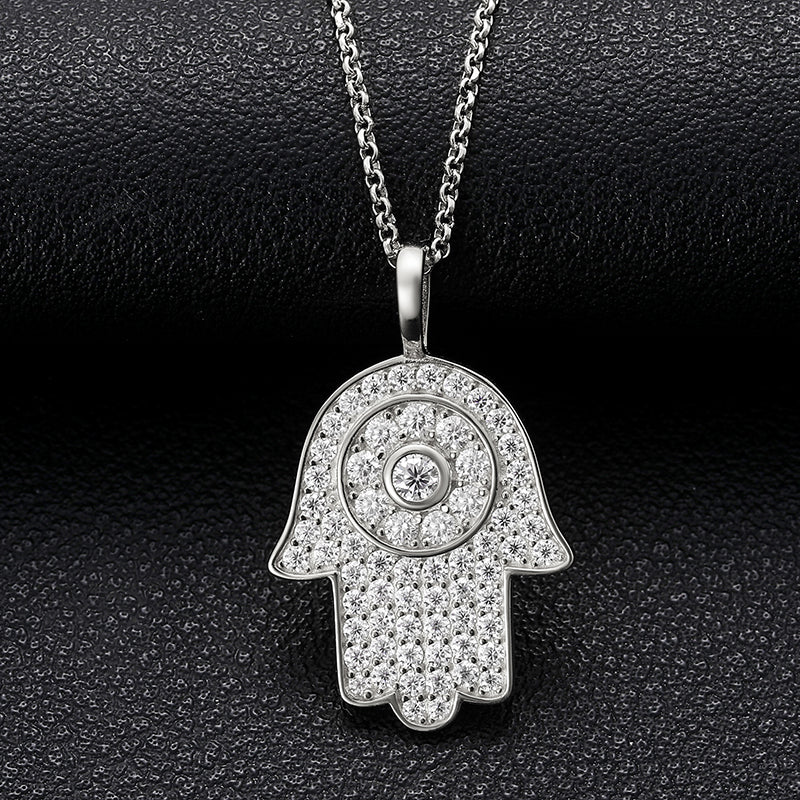 MOISSANITE HAMSA HAND PENDANT IN STERLING SILVER {STYLE 3}