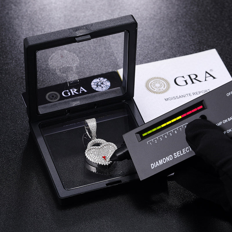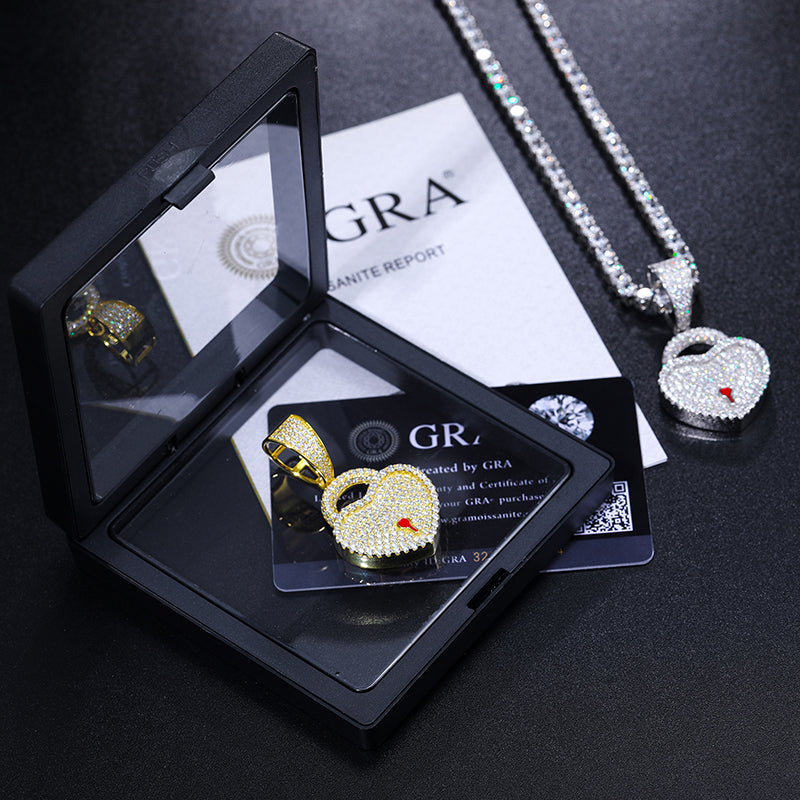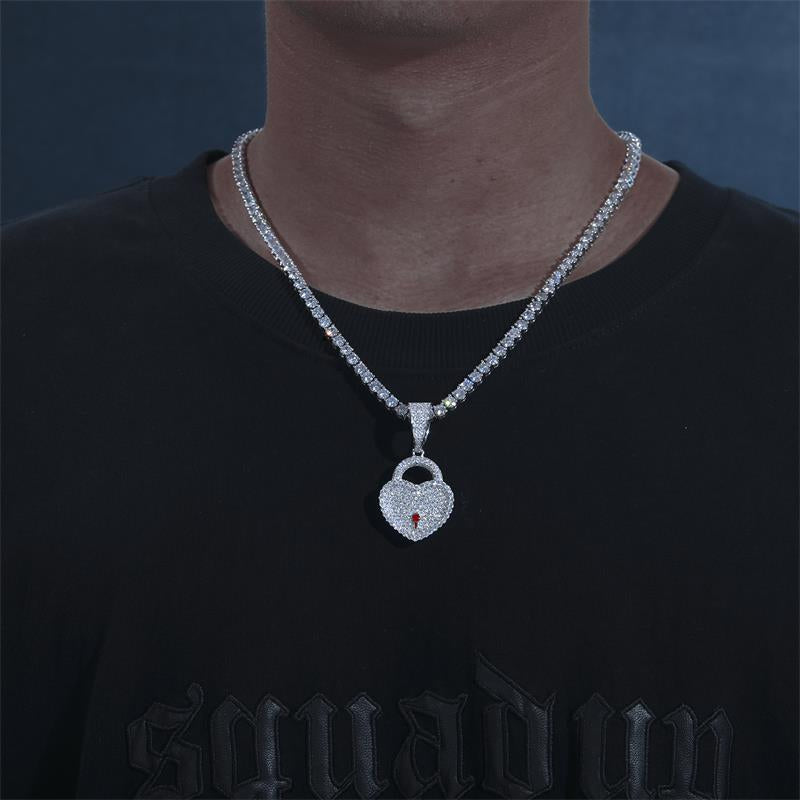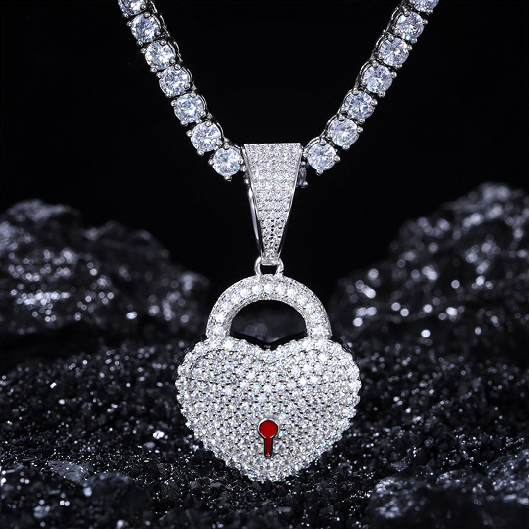 MOISSANITE HEART LOCK PENDANT IN STERLING SILVER