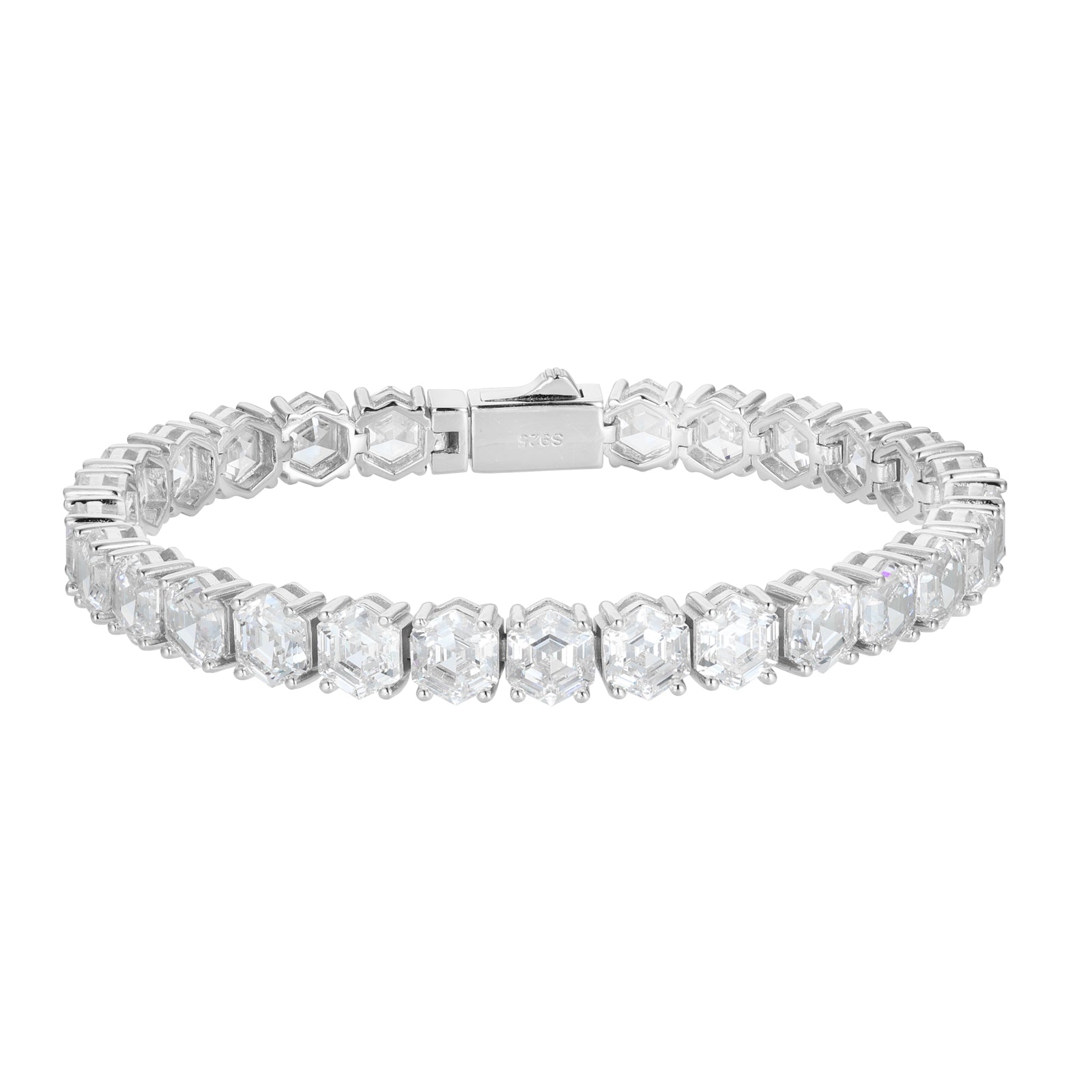 MOISSANITE HEXAGONAL ASSCHER CUT TENNIS BRACELET IN STERLING SILVER