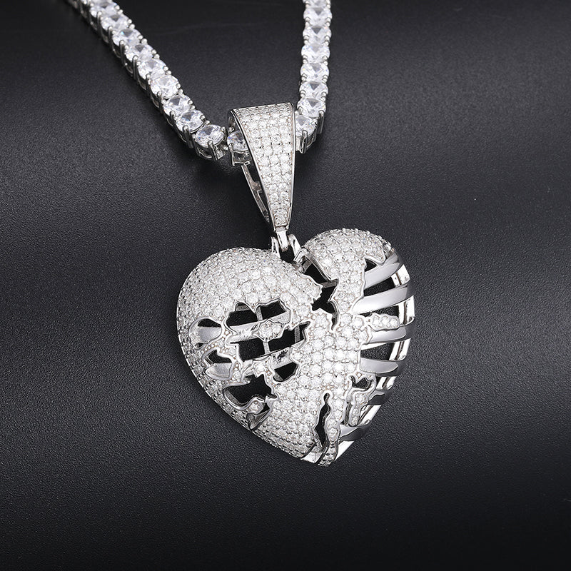 MOISSANITE HOLLOW HEART PENDANT NECKLACE IN STERLING SILVER