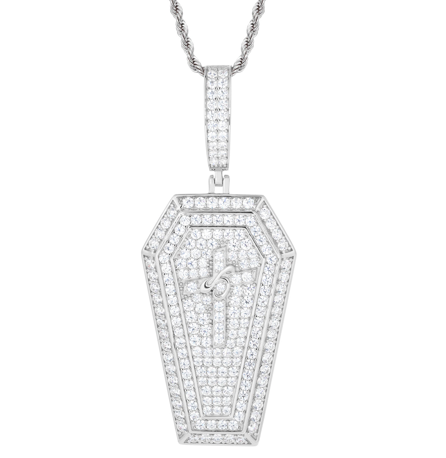 MOISSANITE ICED OUT COFFIN CROSS PENDANT IN STERLING SILVER