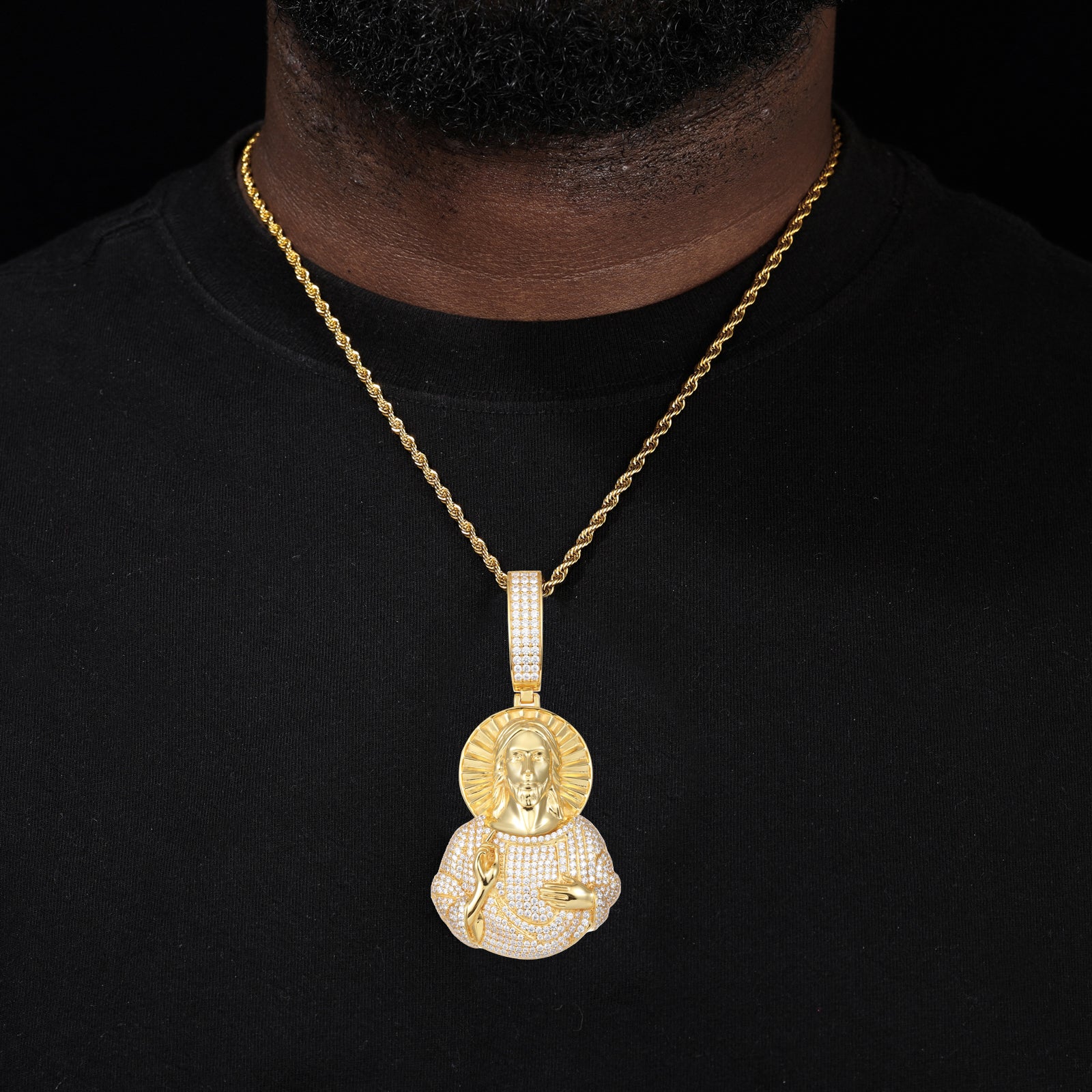 MOISSANITE ICED OUT JESUS CHRIST IDOL PENDANT IN STERLING SILVER