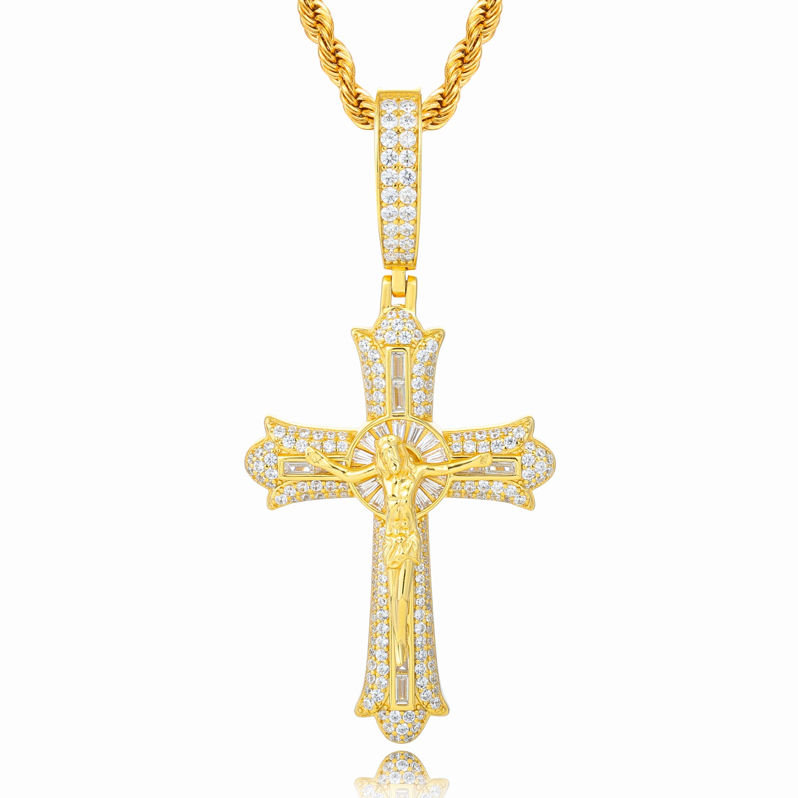 MOISSANITE ICED OUT JESUS CRUCIFIX CROSS PENDANT IN STERLING SILVER