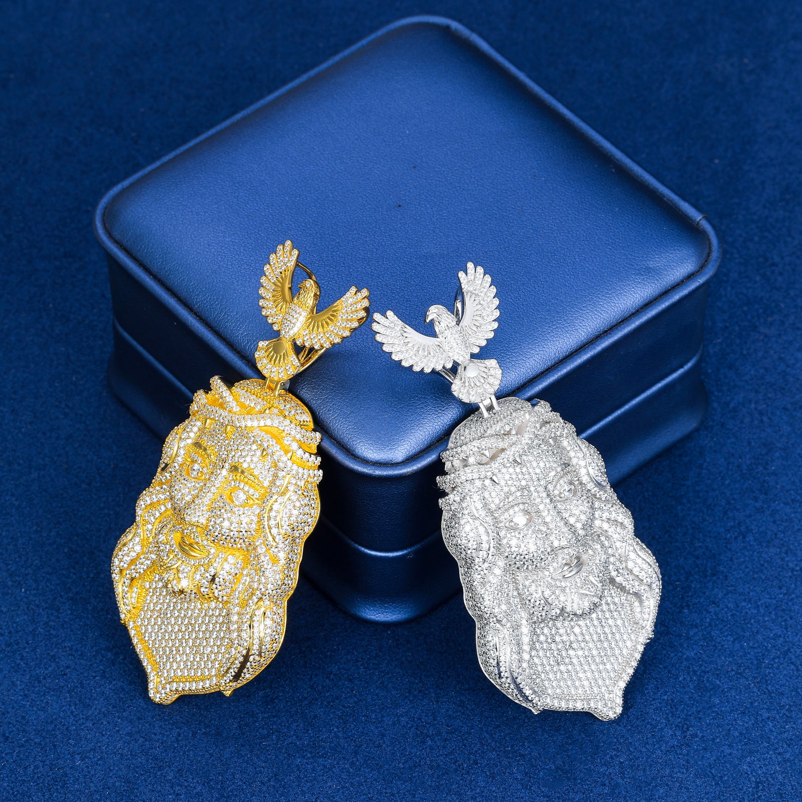 MOISSANITE ICED OUT JESUS EAGLES PENDANT IN STERLING SILVER
