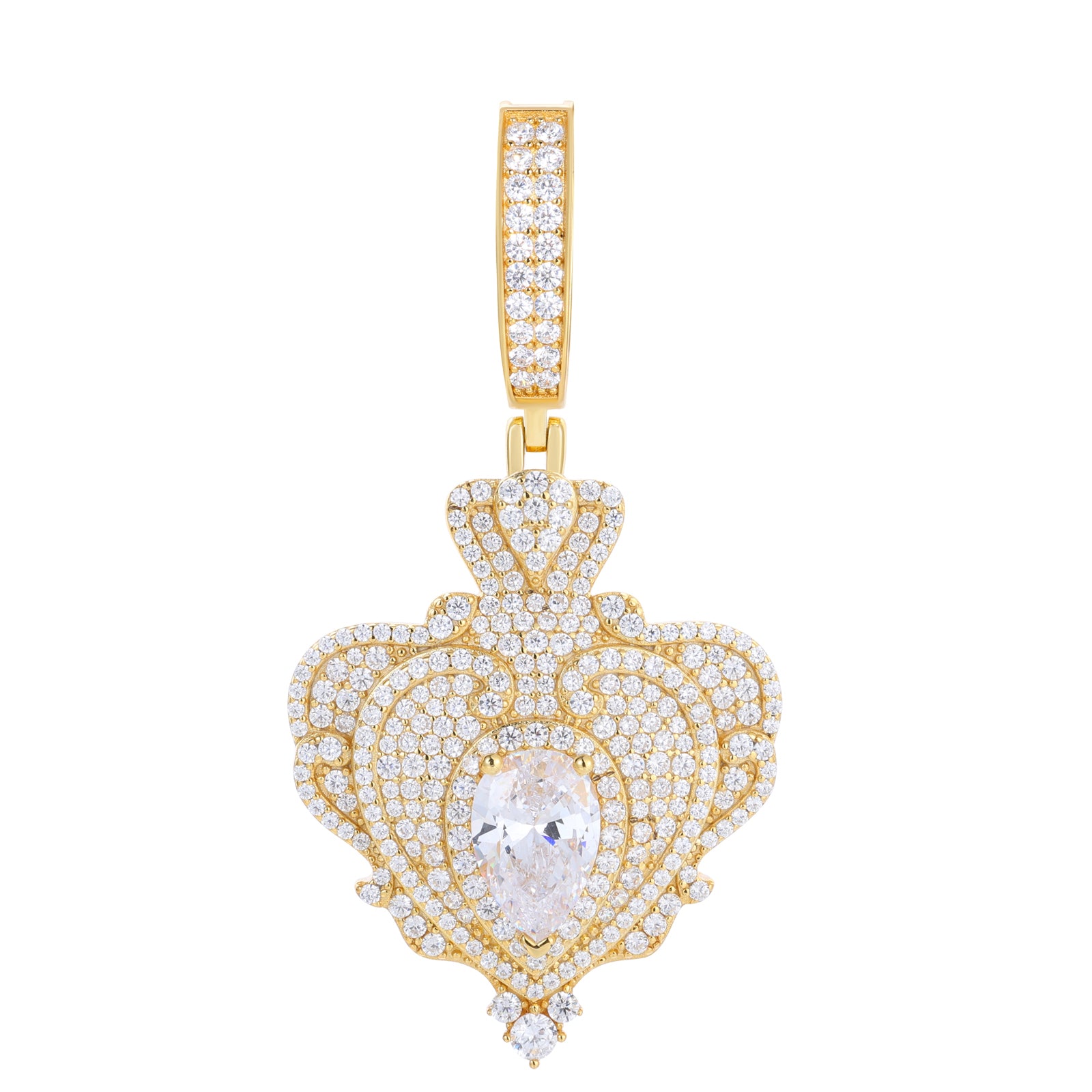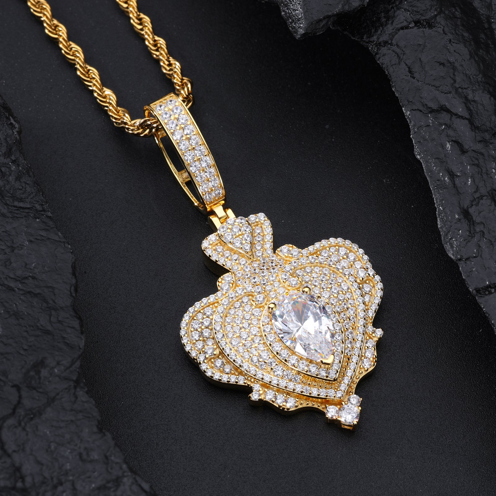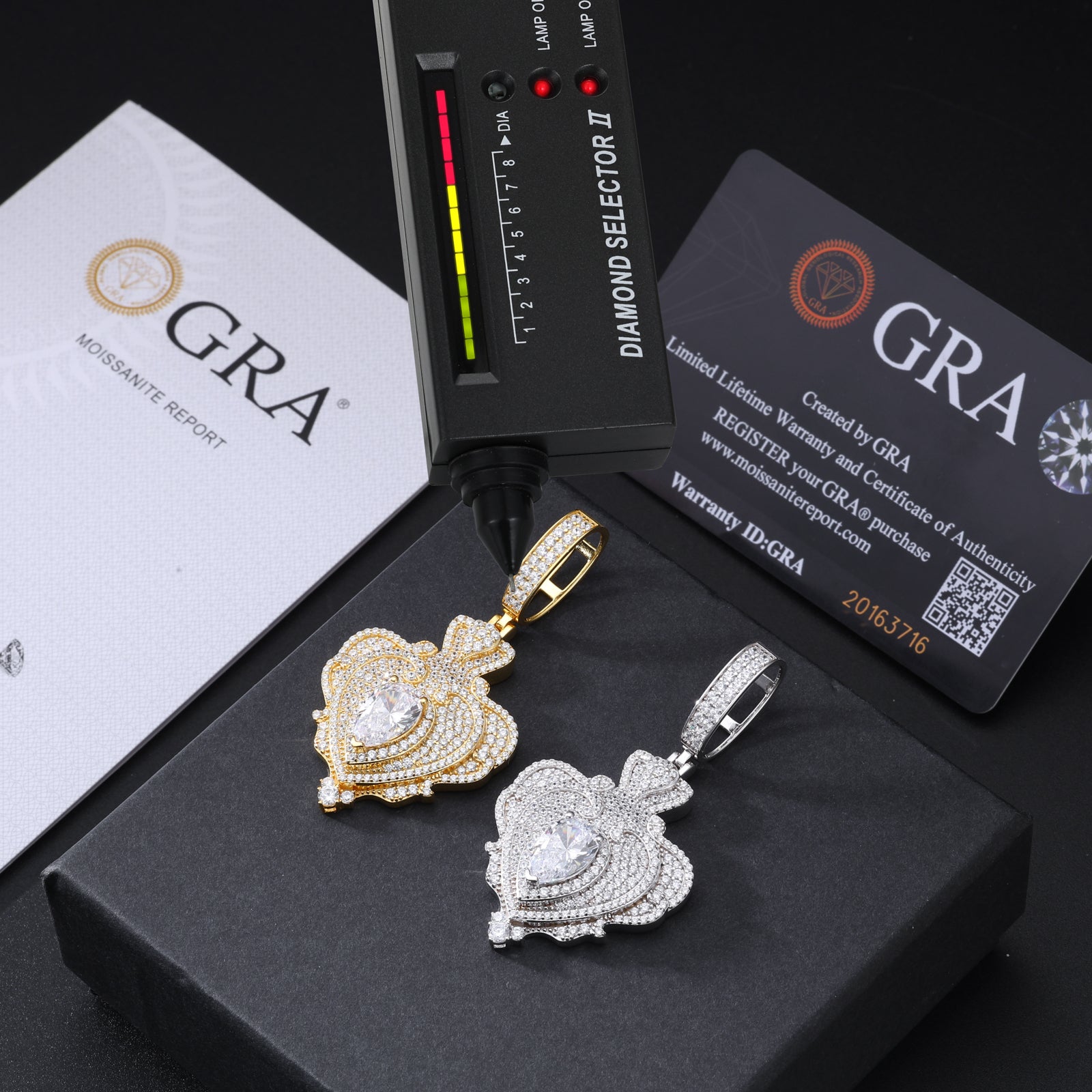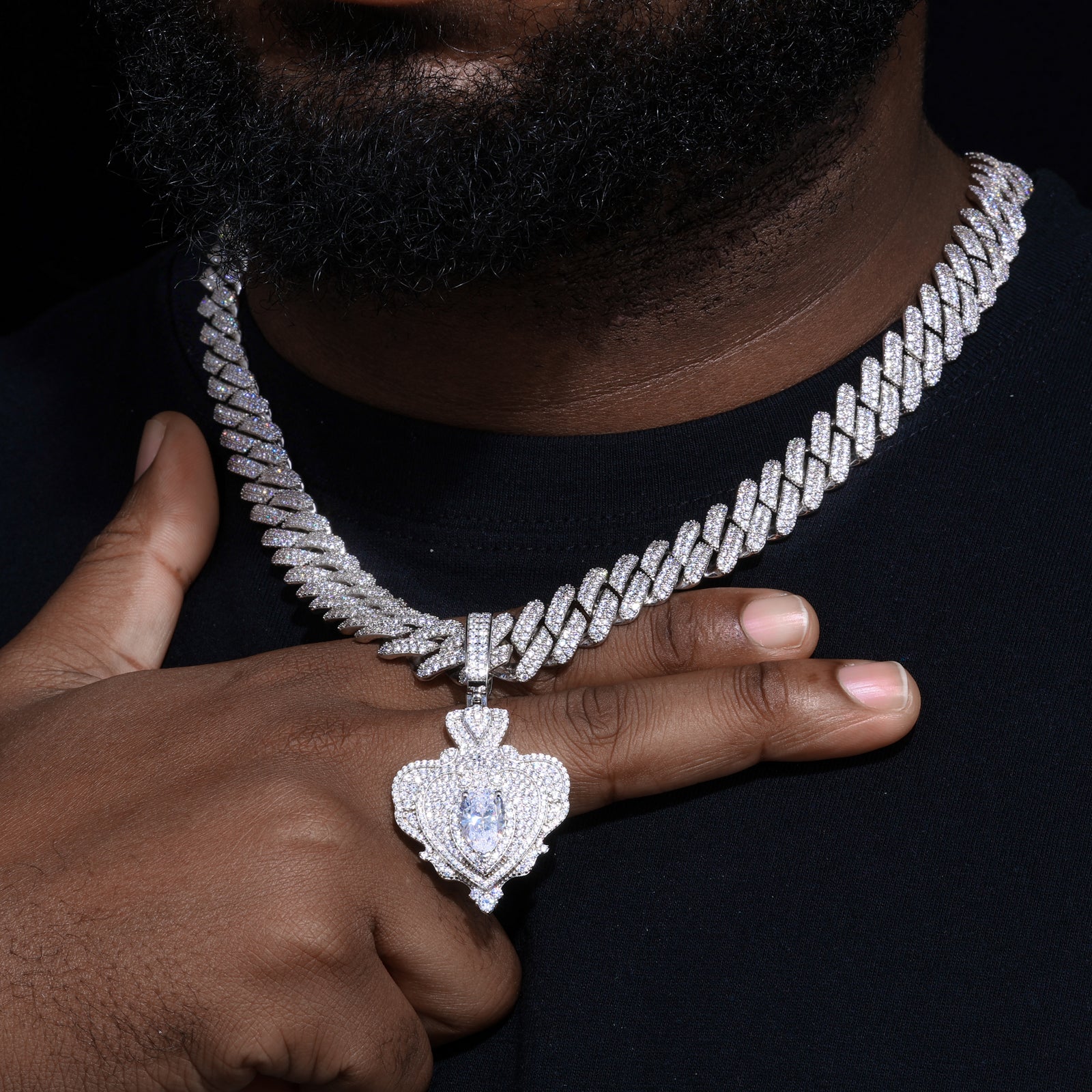 Moissanite Iced Out Pear Cut Heart Pendant in Sterling Silver: A breathtaking fusion of elegance and brilliance, this pendant features a pear-cut heart design encrusted with dazzling moissanite stones. Set in sterling silver, it radiates luxury and charm, making it a perfect statement piece for any occasion. 💖✨