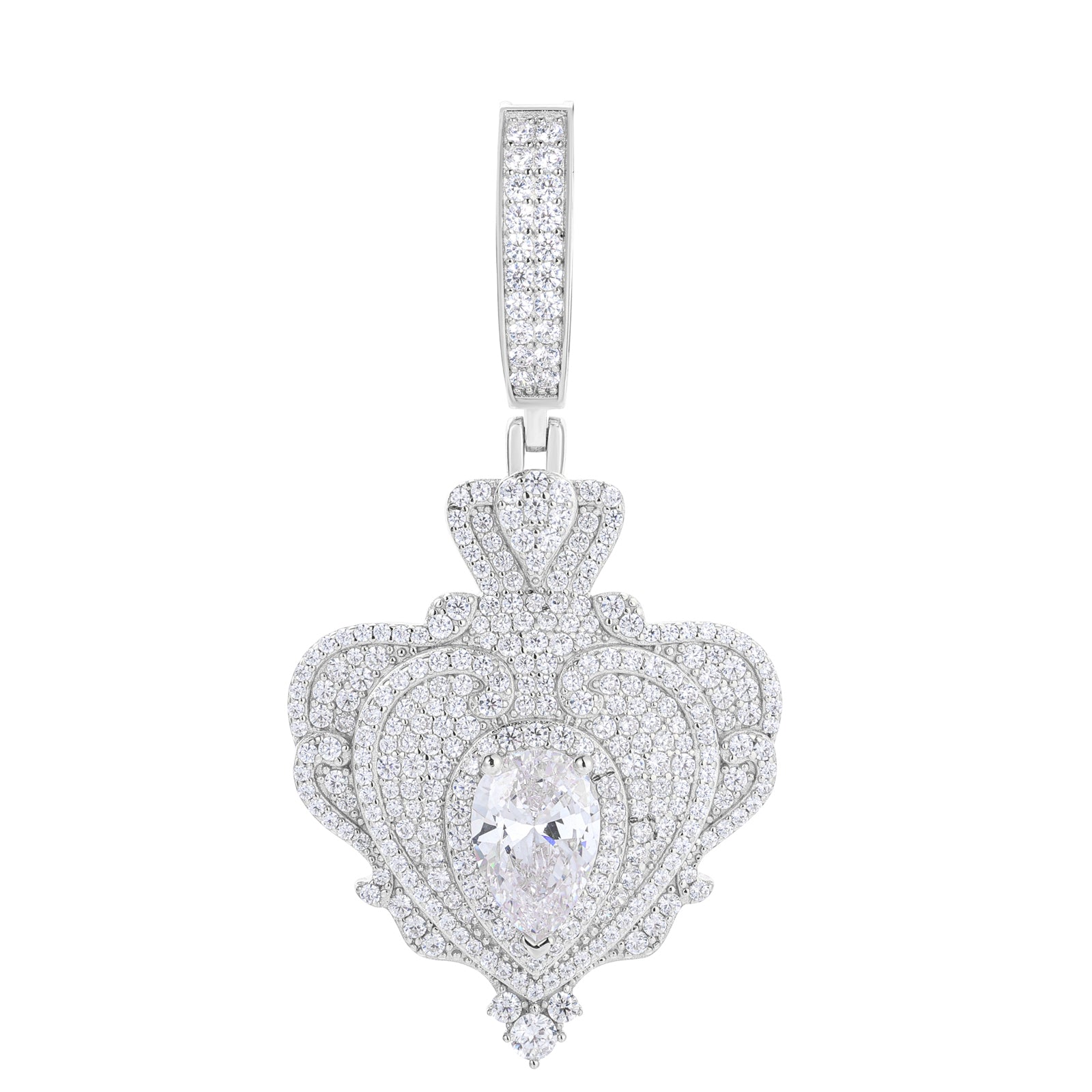 MOISSANITE ICED OUT PEAR CUT HEART PENDANT IN STERLING SILVER