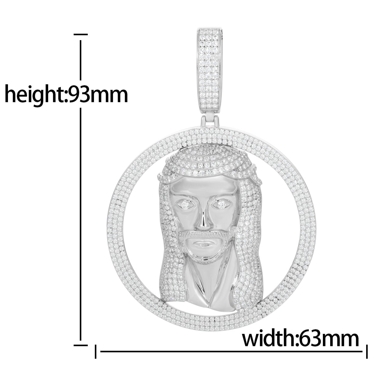 MOISSANITE ICED OUT ROUND JESUS FACE PENDANT IN STERLING SILVER