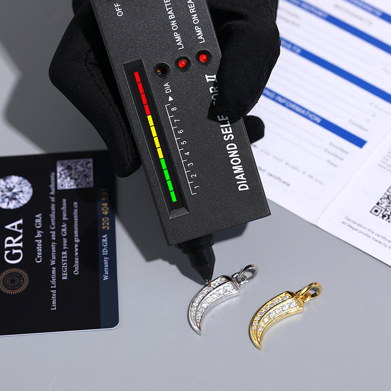 Introducing our Moissanite Italian Horn Pendant Necklace in Sterling Silver. This exquisite necklace features an elegantly crafted Italian horn pendant, adorned with brilliant moissanite stones. Set in high-quality sterling silver, it blends traditional symbolism with modern elegance. Perfect for adding a touch of sophistication and cultural charm to any outfit, this necklace is ideal for both everyday wear and special occasions. Elevate your jewelry collection with this captivating piece, designed to shine and inspire. 🌟💎✨