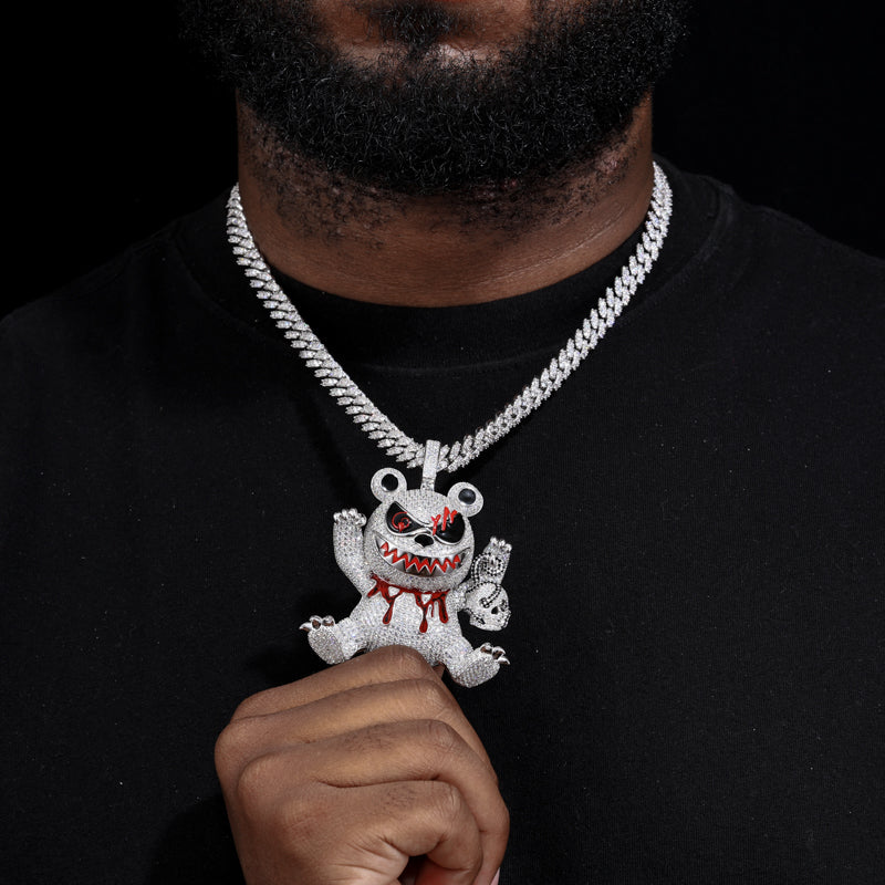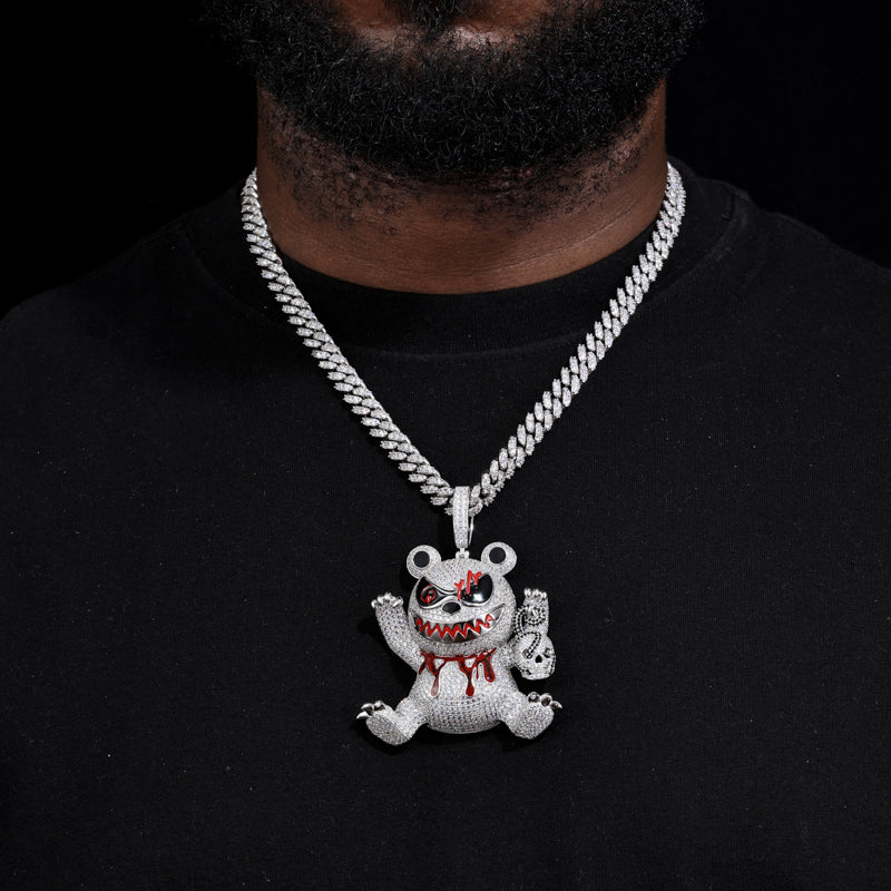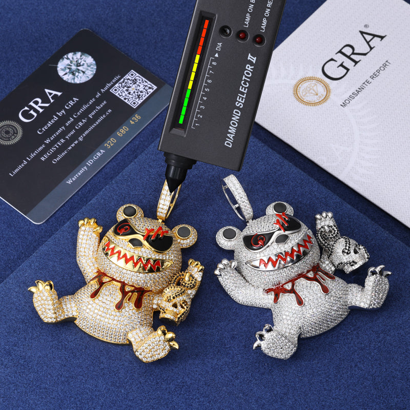 MOISSANITE KILLER BEAR PENDANT IN STERLING SILVER