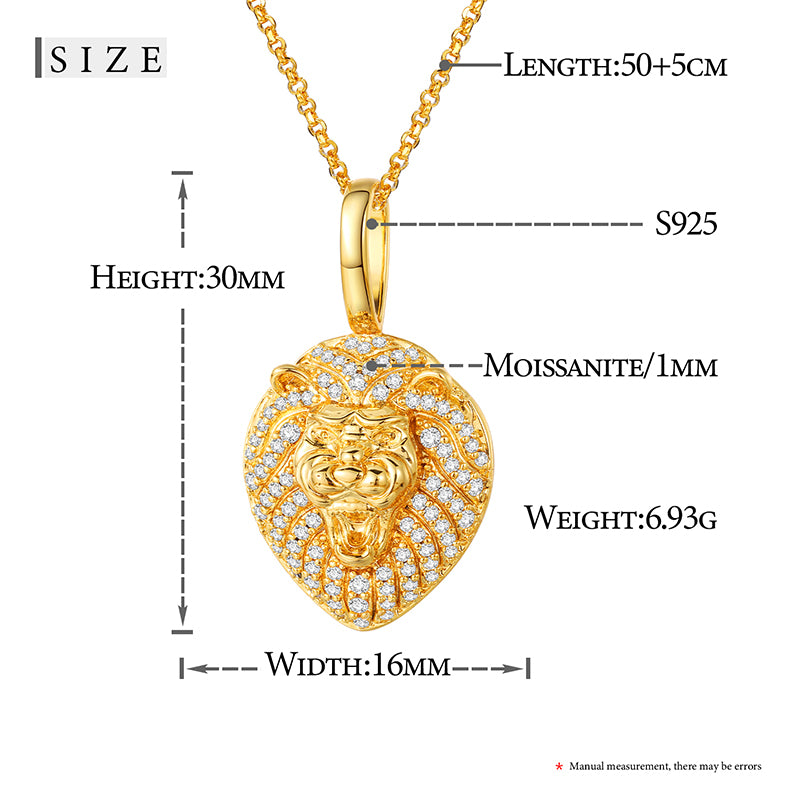 MOISSANITE LION PENDANT IN STERLING SILVER