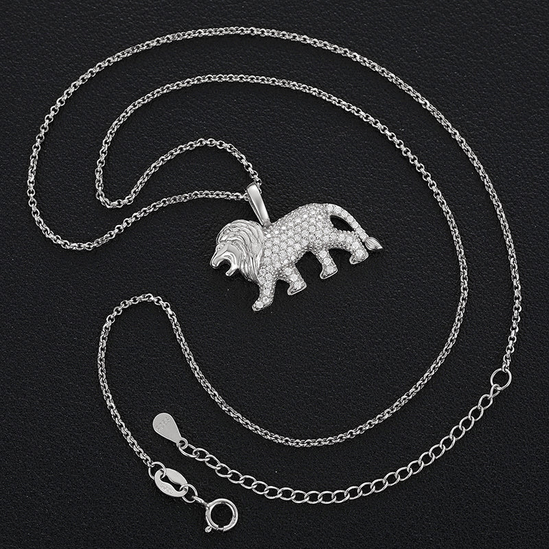 MOISSANITE LION PENDANT IN STERLING SILVER {STYLE 2}