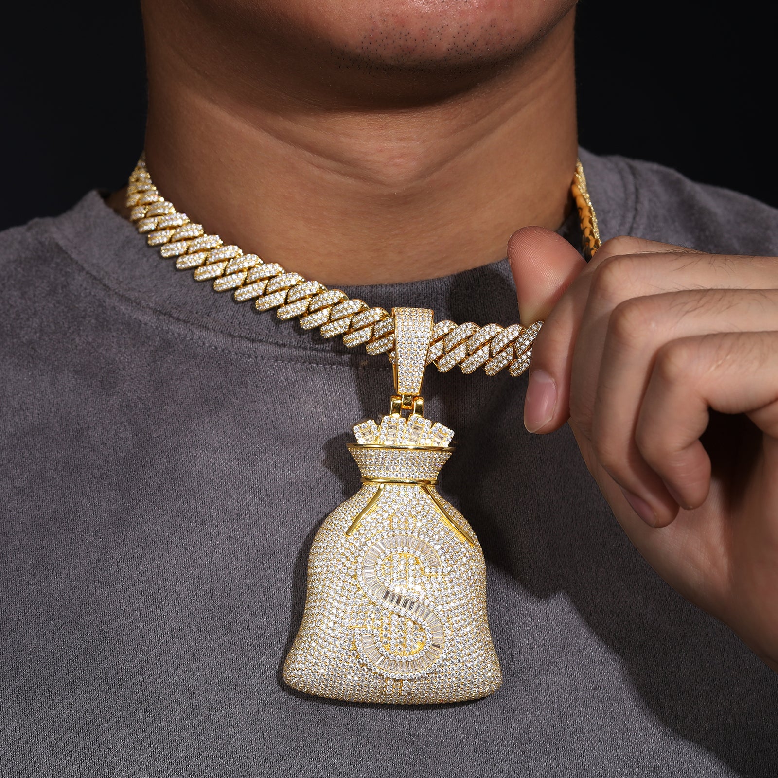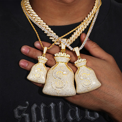Introducing our Moissanite Money Bag Pendant in Sterling Silver {Style 3}, a symbol of prosperity and style. This pendant features a detailed money bag design, adorned with sparkling moissanite stones and crafted from high-quality sterling silver. Perfect for those who appreciate unique and luxurious jewelry, this pendant adds a touch of glamour and financial flair to any outfit. Elevate your look with this captivating and distinctive accessory. 💼💎