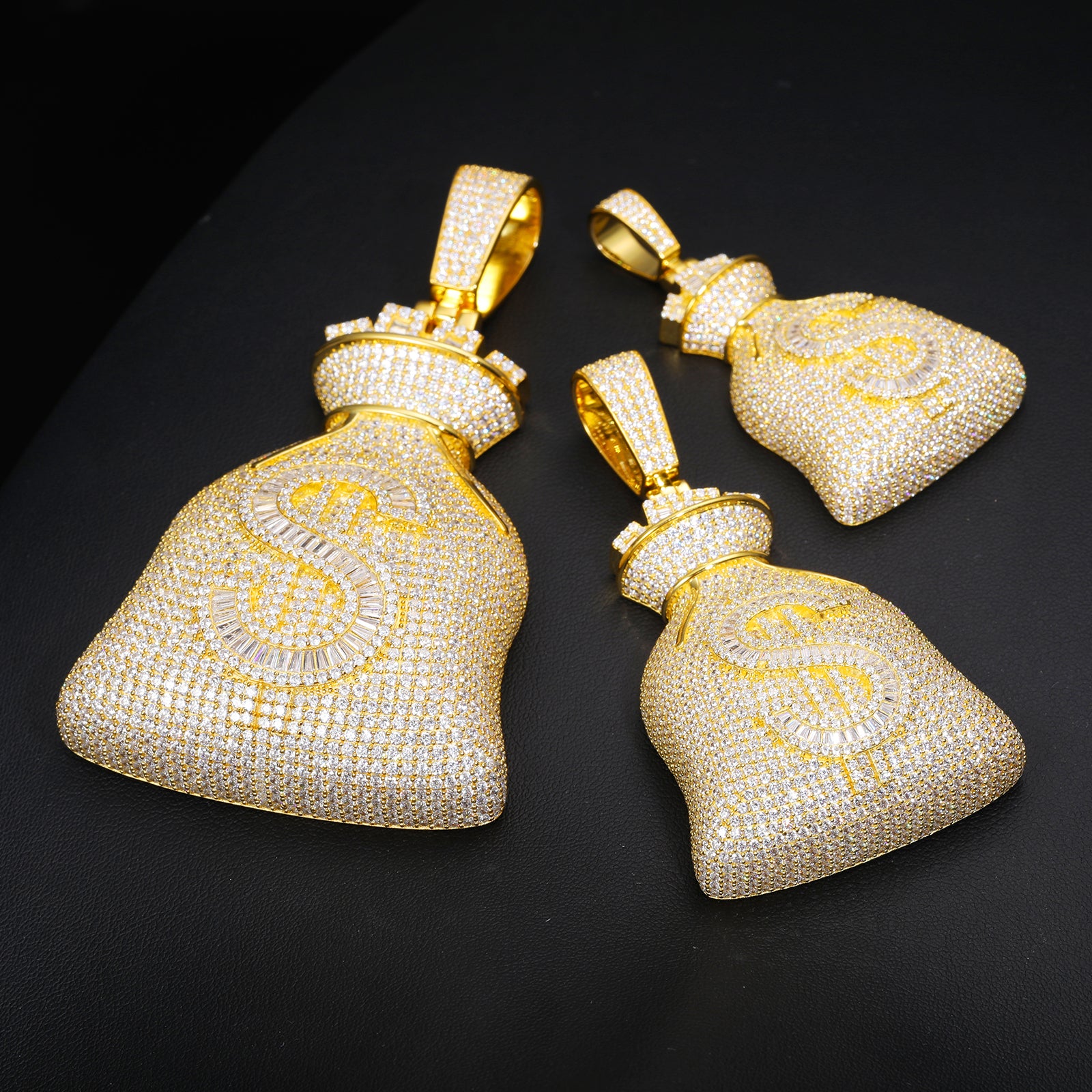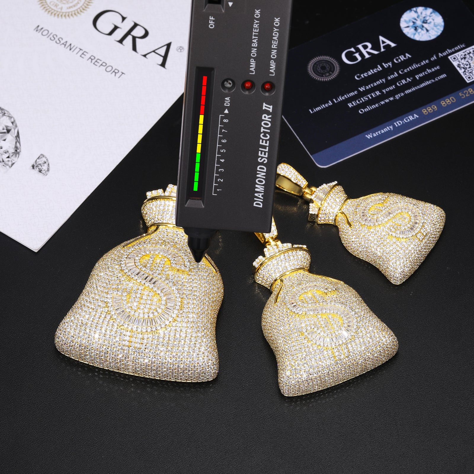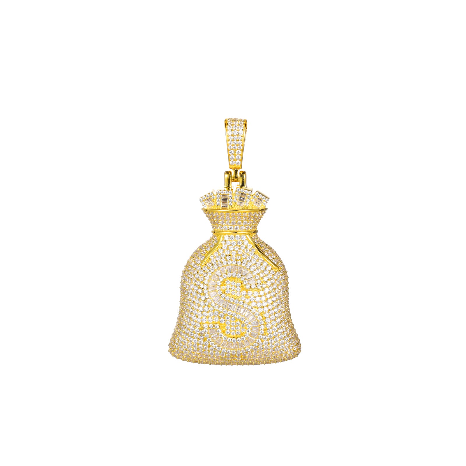 MOISSANITE MONEY BAG PENDANT IN STERLING SILVER {STYLE 3}