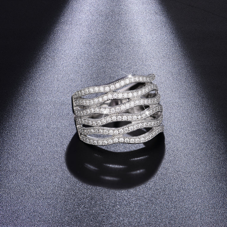 MOISSANITE MULTI-LAYER BAND RING IN STERLING SILVER {STYLE 2}