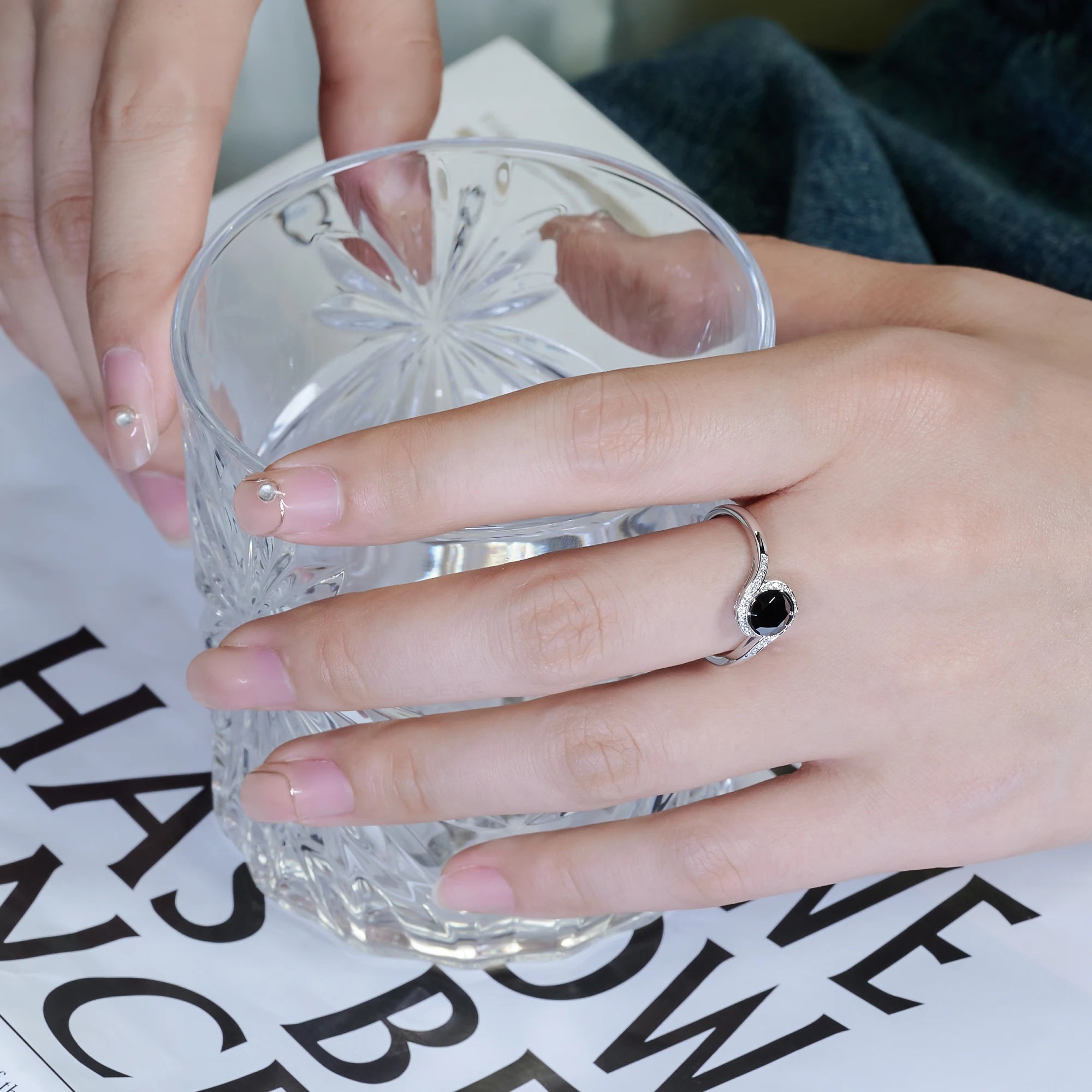 Moissanite Noir Halo Band Ring in Solid Gold: Bold yet refined, this captivating ring showcases a dark moissanite centerpiece encircled by a radiant halo of brilliance. Set in solid gold, its sleek contrast of light and shadow embodies modern sophistication. Perfect for those who dare to stand out with timeless allure and contemporary elegance. ⚫✨