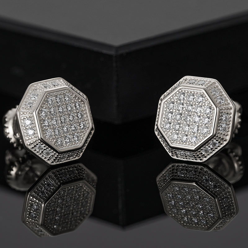 Introducing the Moissanite Octagon Stud Earrings in Sterling Silver. These stunning earrings feature brilliantly cut moissanite stones in an eye-catching octagon shape, set in polished sterling silver. Perfect for adding a touch of elegance to any outfit, these studs are versatile enough for both everyday wear and special occasions. Experience timeless beauty and exceptional sparkle with these exquisite earrings. ✨💎