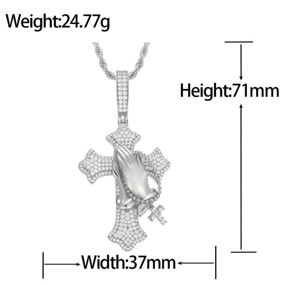 MOISSANITE PRAY HAND CROSS PENDANT IN STERLING SILVER (STYLE 2)