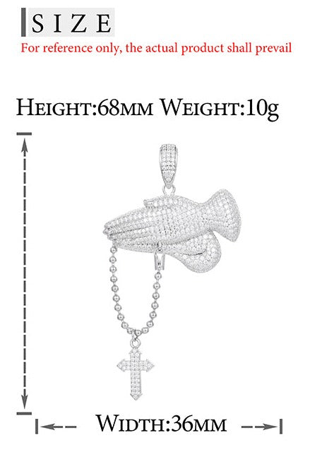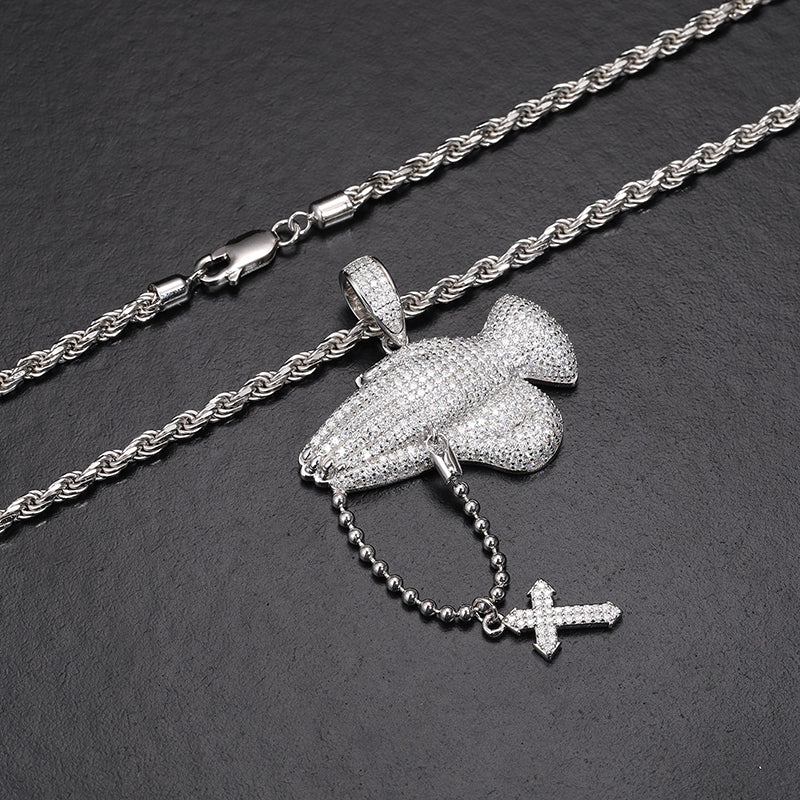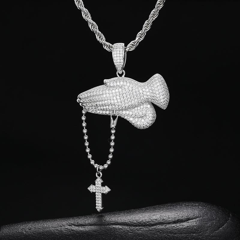 MOISSANITE PRAY HAND CROSS PENDANT NECKLACE IN STERLING SILVER