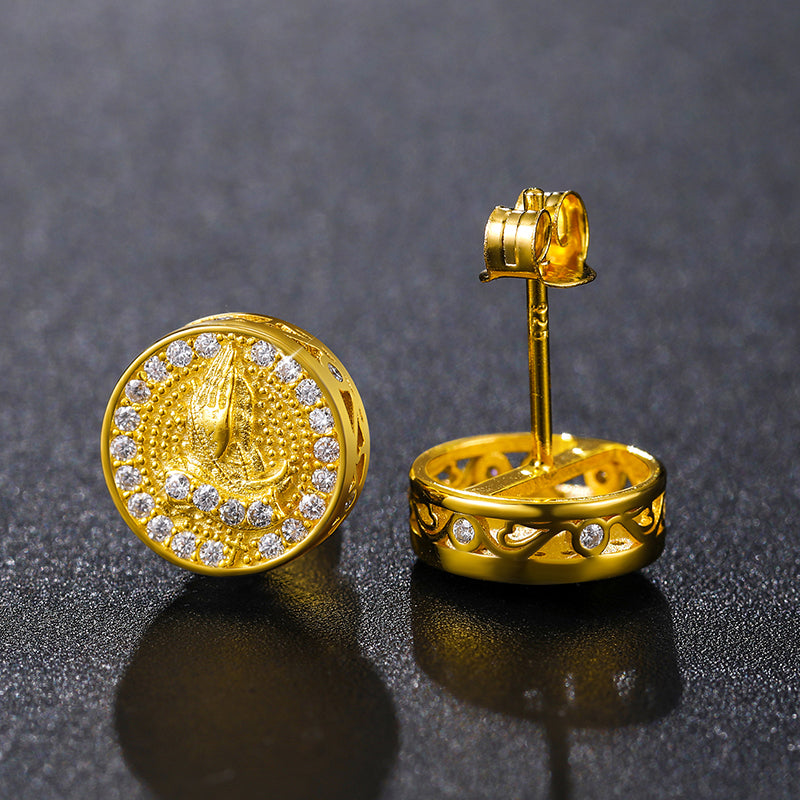 MOISSANITE PRAYER HAND STUD EARRINGS IN STERLING SILVER