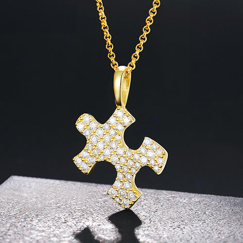 Introducing our Moissanite Puzzle Pendant in Sterling Silver, a perfect blend of elegance and intrigue. This unique pendant features interlocking puzzle pieces adorned with sparkling moissanite stones, set in high-quality sterling silver. Ideal for those who appreciate thoughtful and sophisticated jewelry, this pendant symbolizes connection and unity. Add a touch of sparkle and meaning to your collection with this captivating and timeless piece. 🧩💎