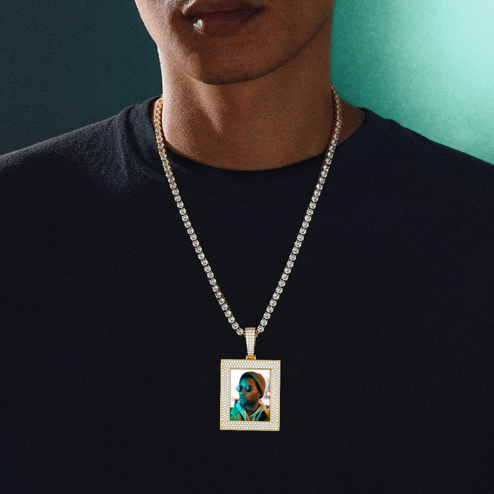 MOISSANITE RECTANGLE CUSTOM PHOTO PENDANT IN STERLING SILVER {STYLE 2}
