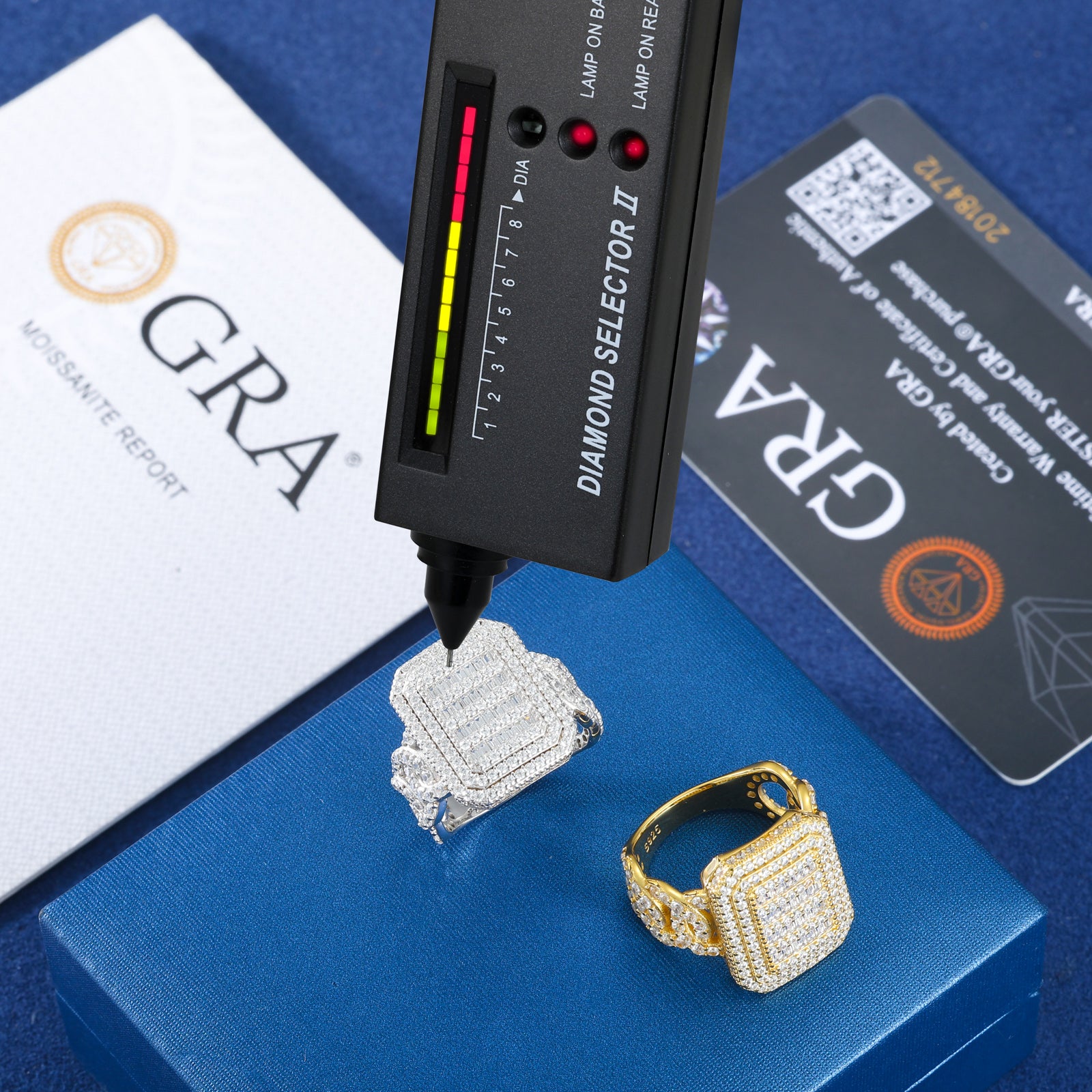 Iced Out Moissanite Side Cuban Ring in Sterling Silver: This bold Cuban-style ring is fully iced out with brilliant moissanite diamonds, delivering head-turning shine and heavyweight presence. Crafted in sterling silver, it blends streetwear swagger with high-end sparkle—perfect for making a statement without saying a word. 💎🔥