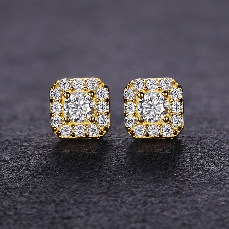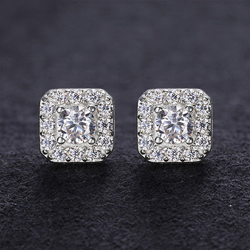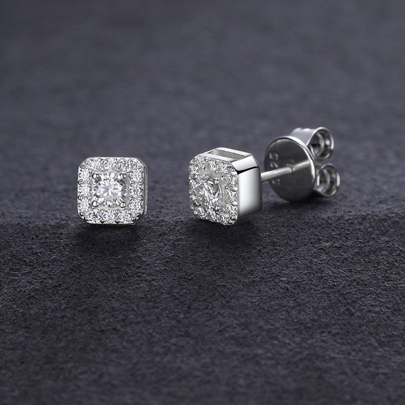 MOISSANITE SQUARE HALO STUD EARRINGS IN STERLING SILVER